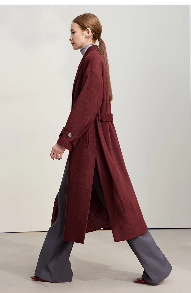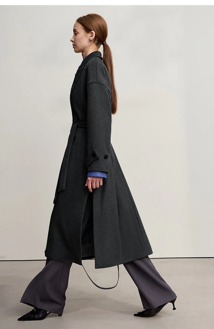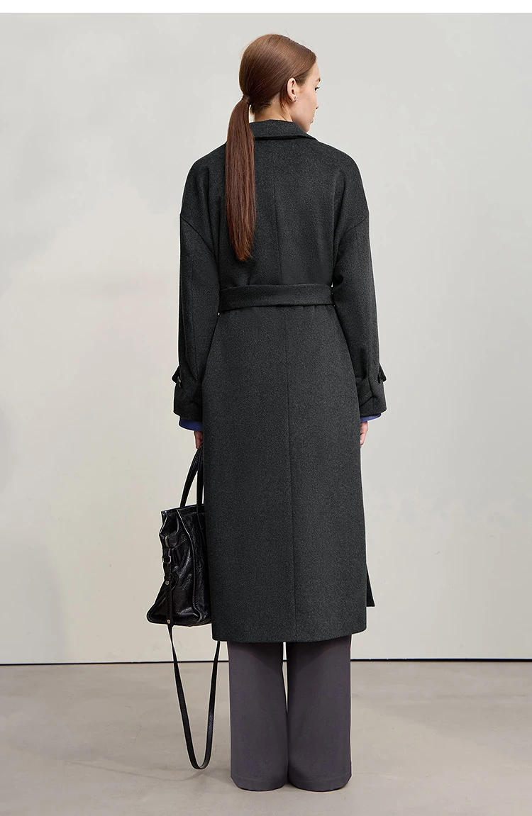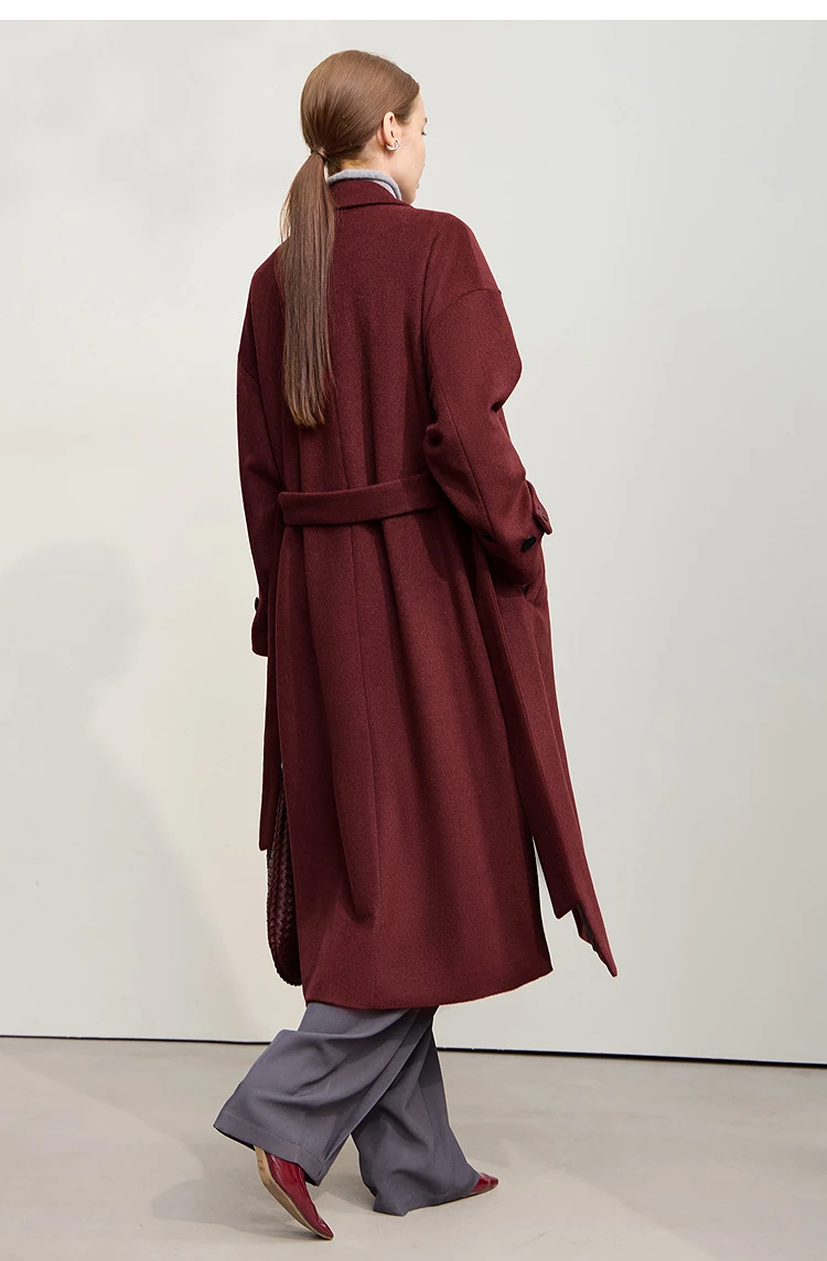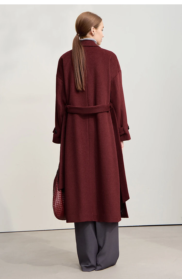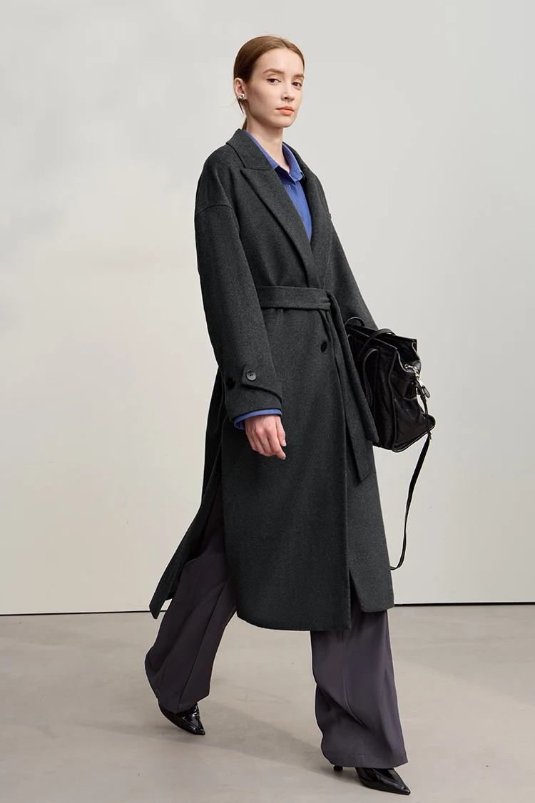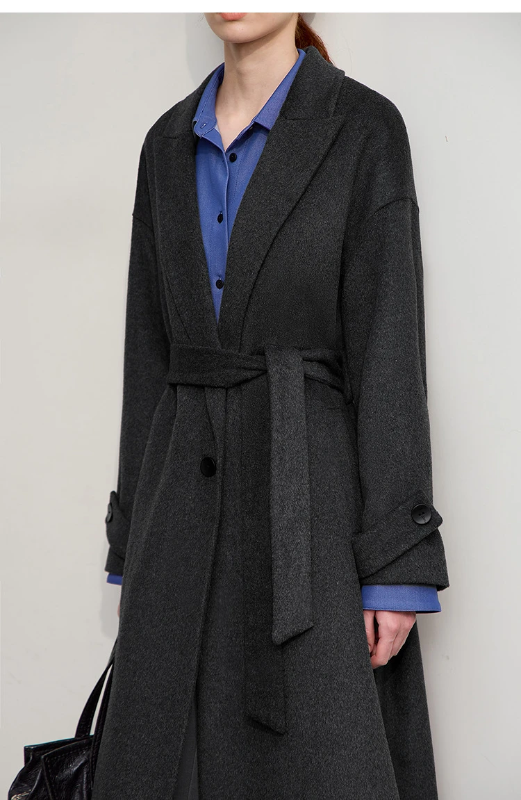 Amii Cappotto di lana da donna 2025 Inverno Nuovo pendolare Colletto rovesciato con cintura Giacca lunga di lana allentata Top caldo da donna 12544024
