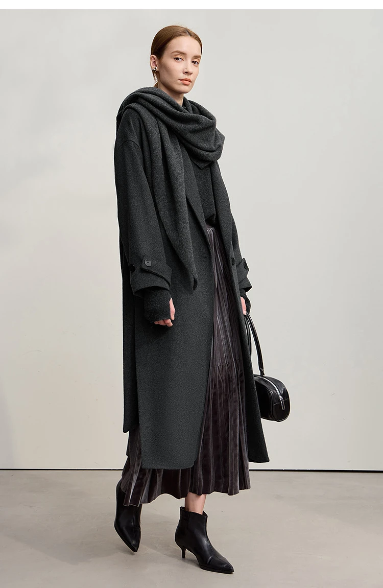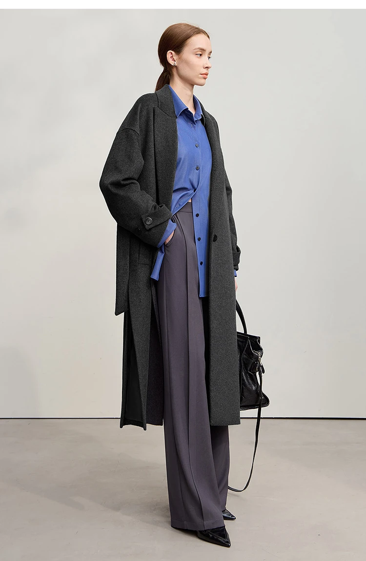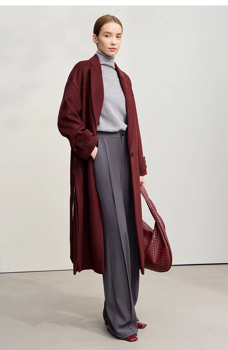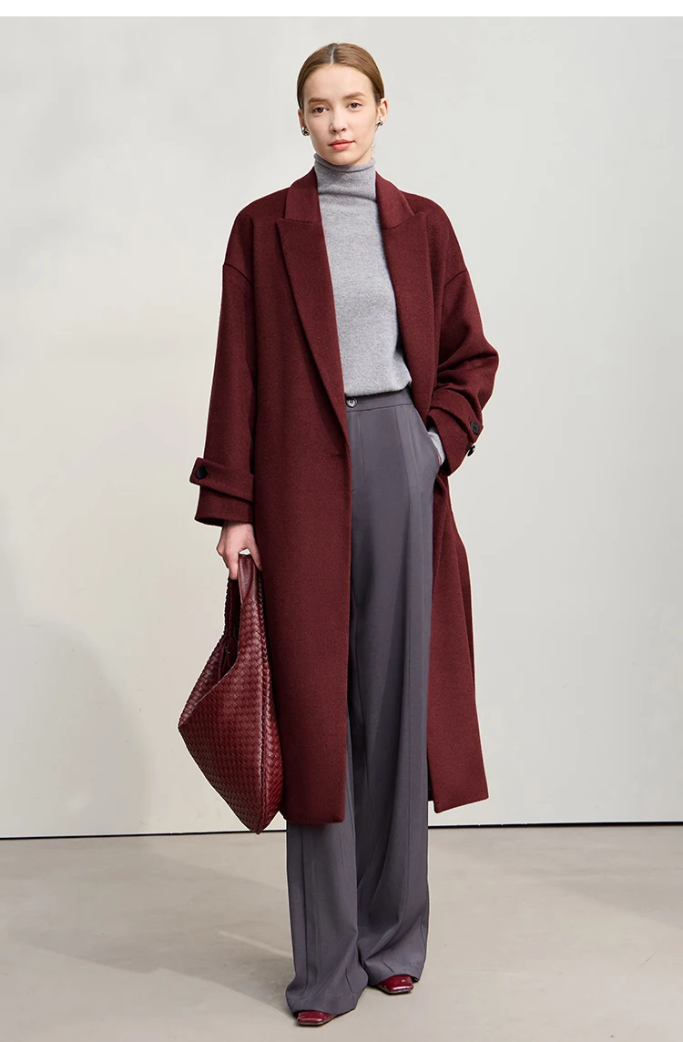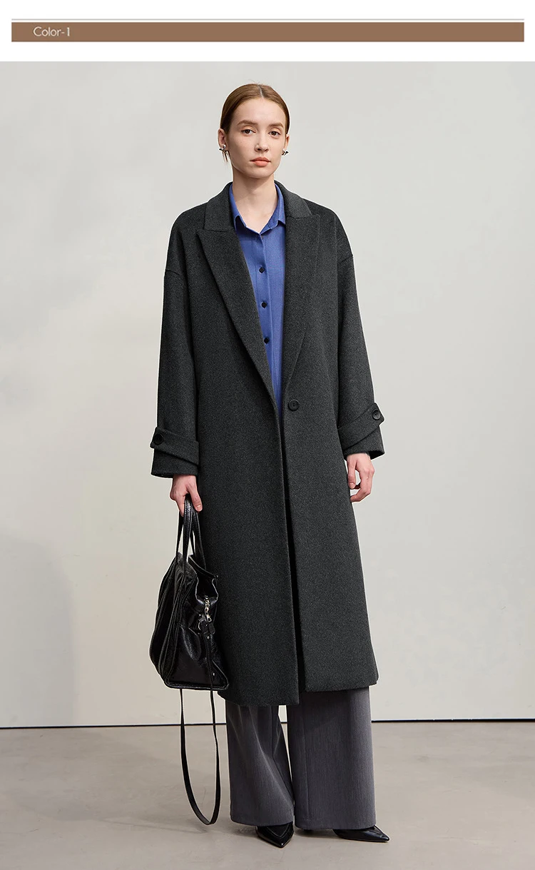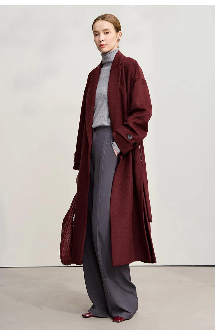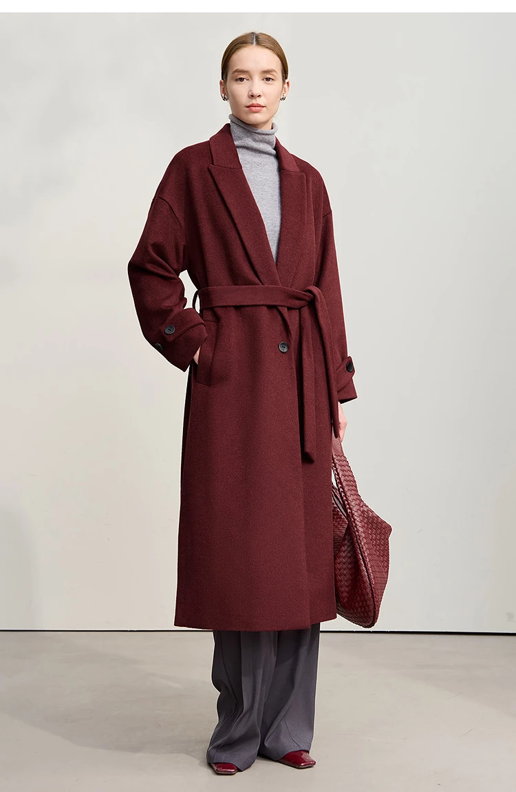 Amii Cappotto di lana da donna 2025 Inverno Nuovo pendolare Colletto rovesciato con cintura Giacca lunga di lana allentata Top caldo da donna 12544024