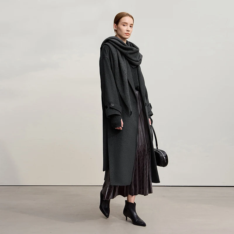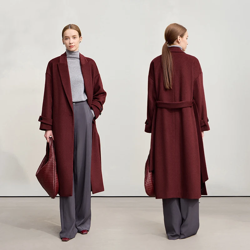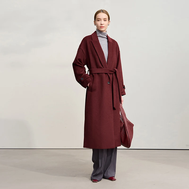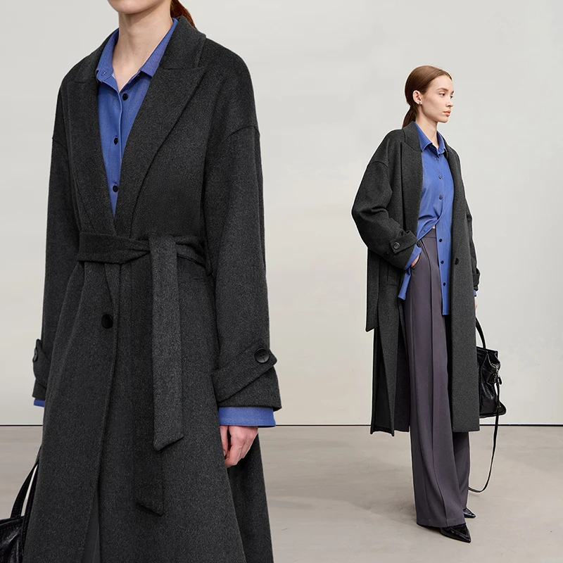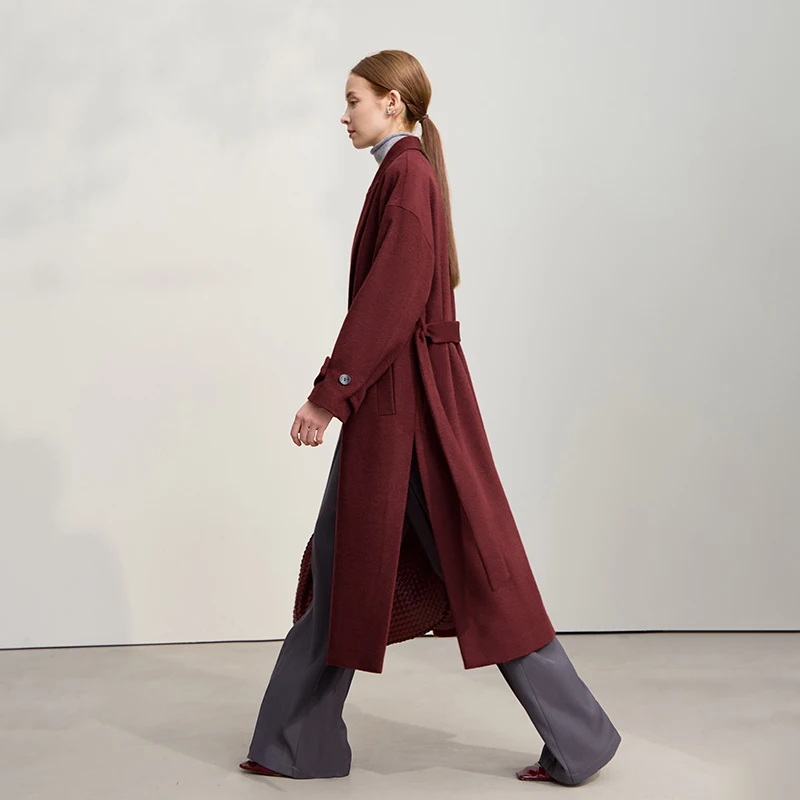 Amii Cappotto di lana da donna 2025 Inverno Nuovo pendolare Colletto rovesciato con cintura Giacca lunga di lana allentata Top caldo da donna 12544024