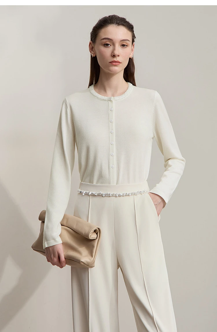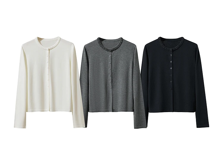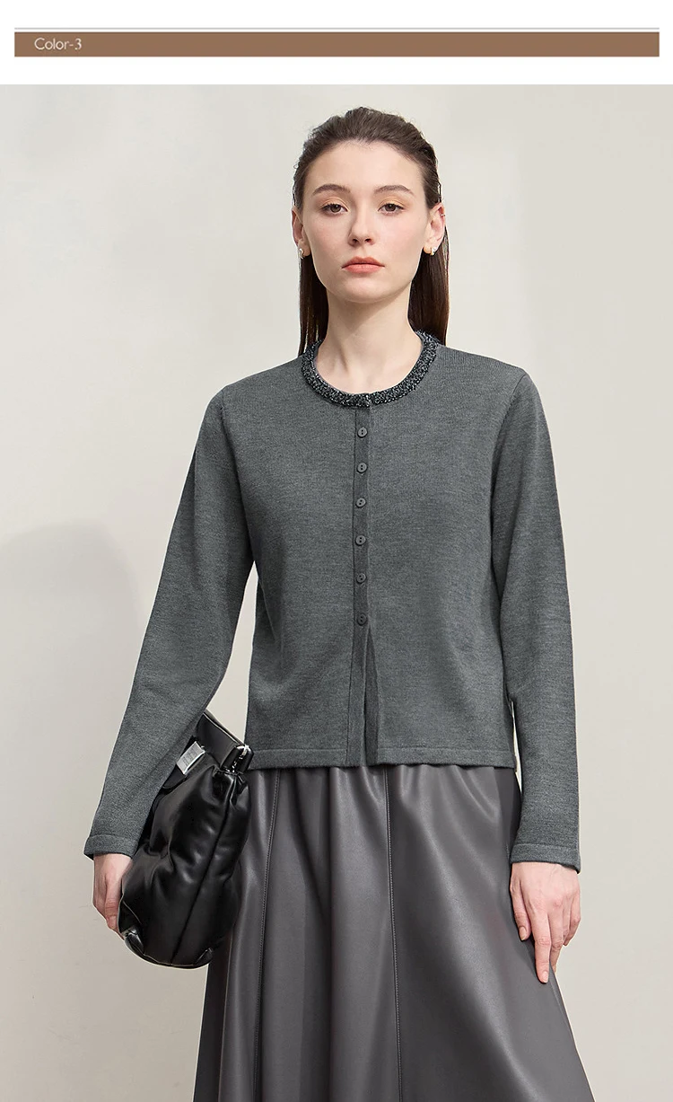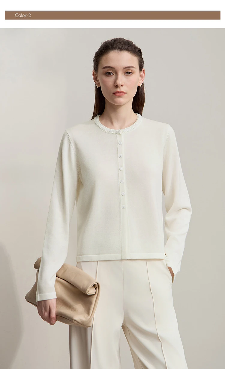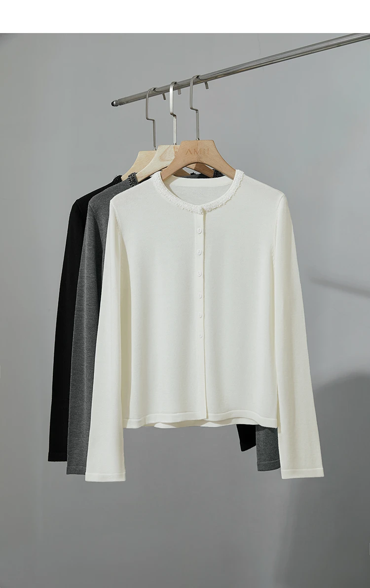 AMII Cardigan da donna 2025 Autunno Nuovo dritto Solido Abbigliamento da donna Semplice O-Collo Casual Versatile Cardigan di lana Donna 12523107
