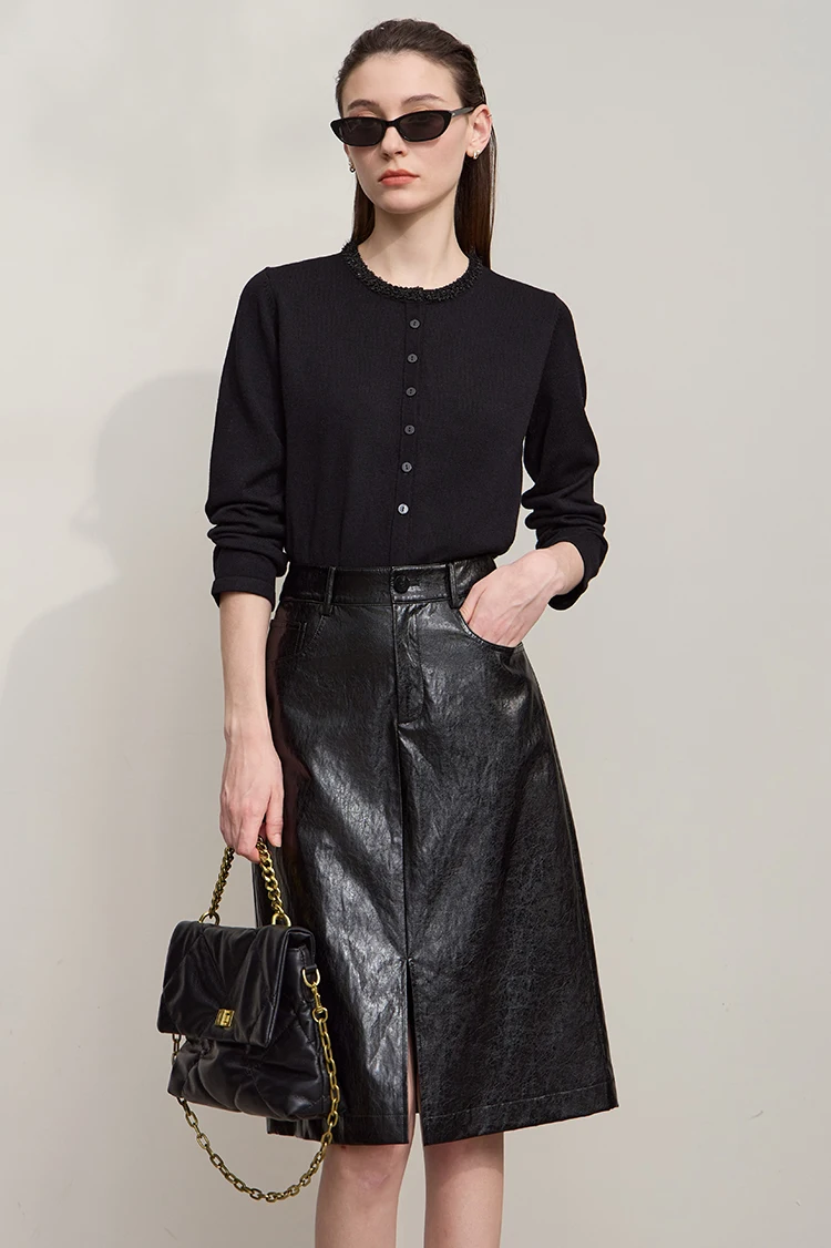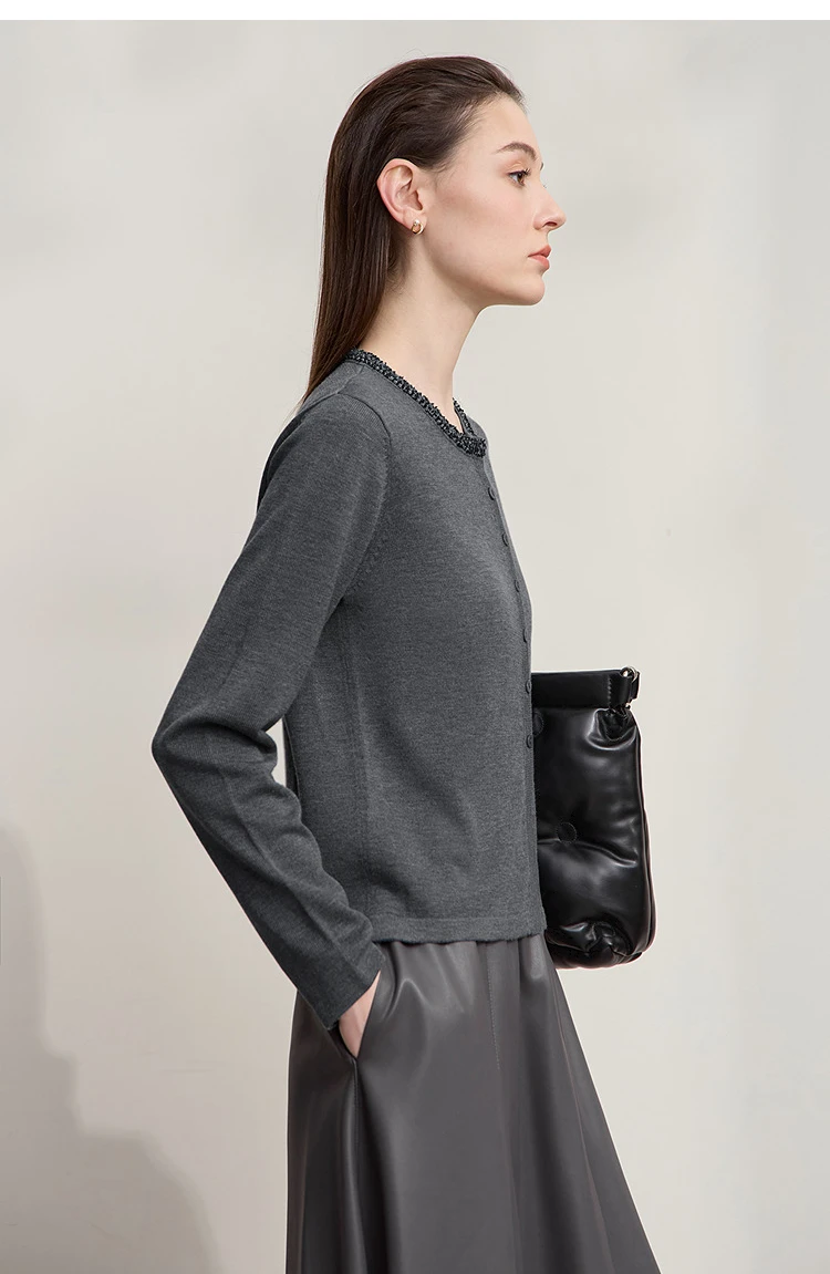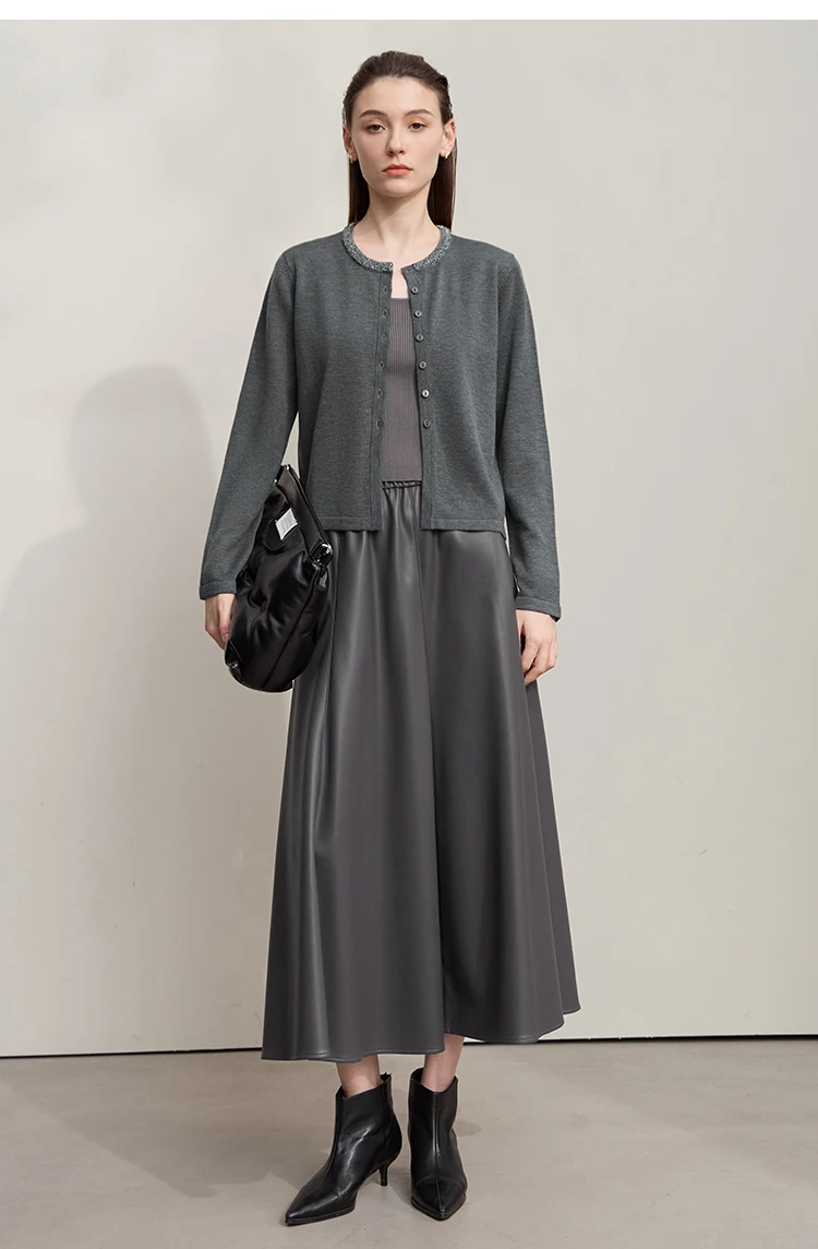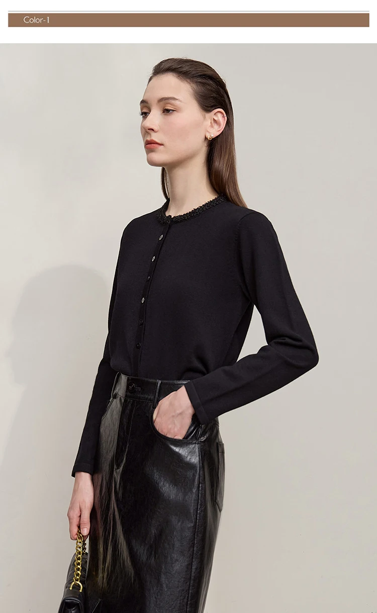 AMII Cardigan da donna 2025 Autunno Nuovo dritto Solido Abbigliamento da donna Semplice O-Collo Casual Versatile Cardigan di lana Donna 12523107