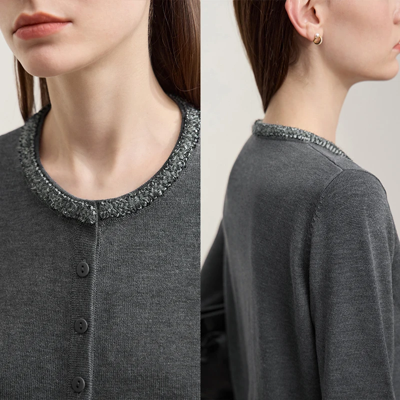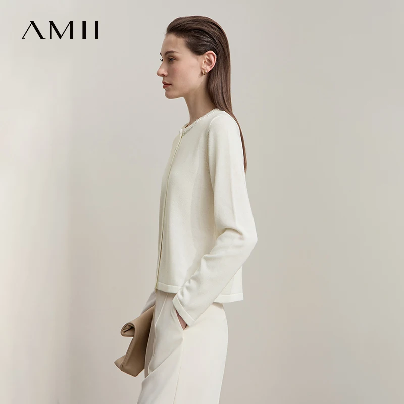 AMII Cardigan da donna 2025 Autunno Nuovo dritto Solido Abbigliamento da donna Semplice O-Collo Casual Versatile Cardigan di lana Donna 12523107
