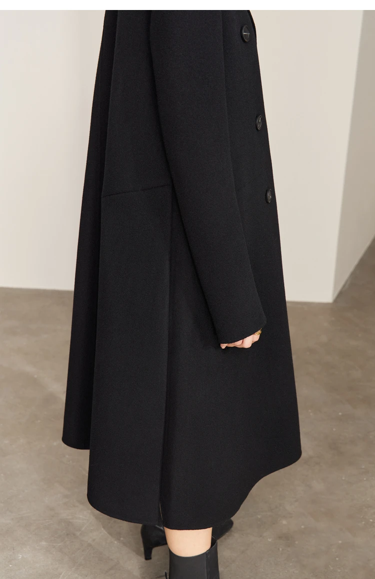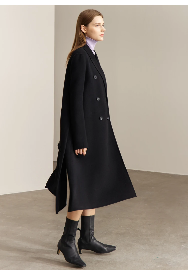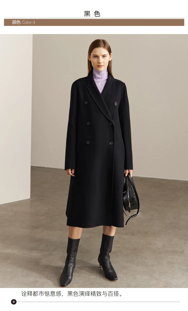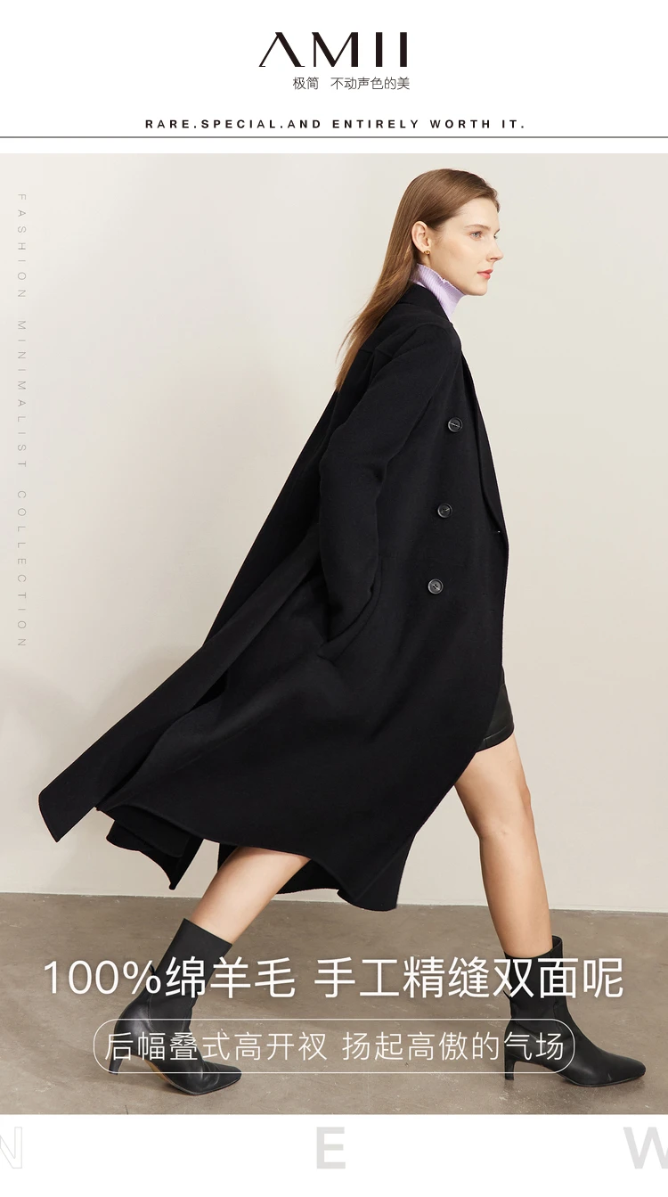 AMII Minimalismo 100% Cappotto di Lana Delle Donne 2024 di Inverno Doppio Petto Francese Elegante Pendolare Allentato Giacca Lunga Abbigliamento 12270566