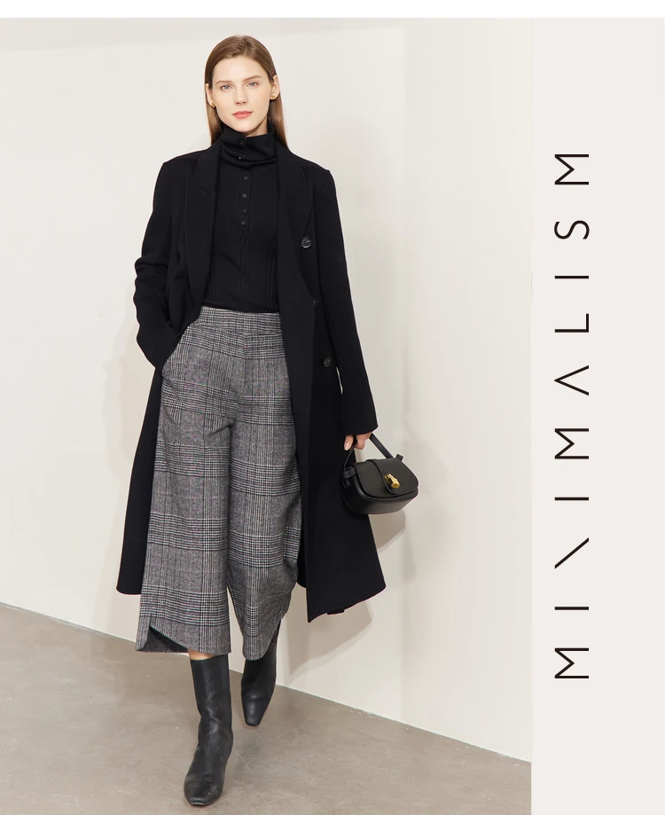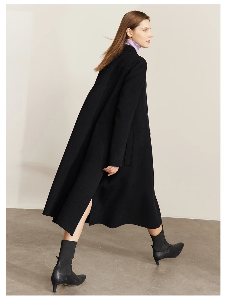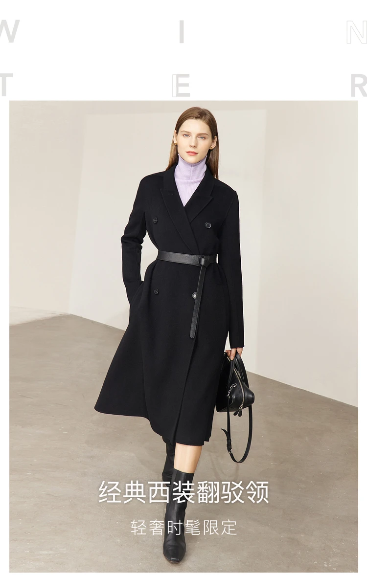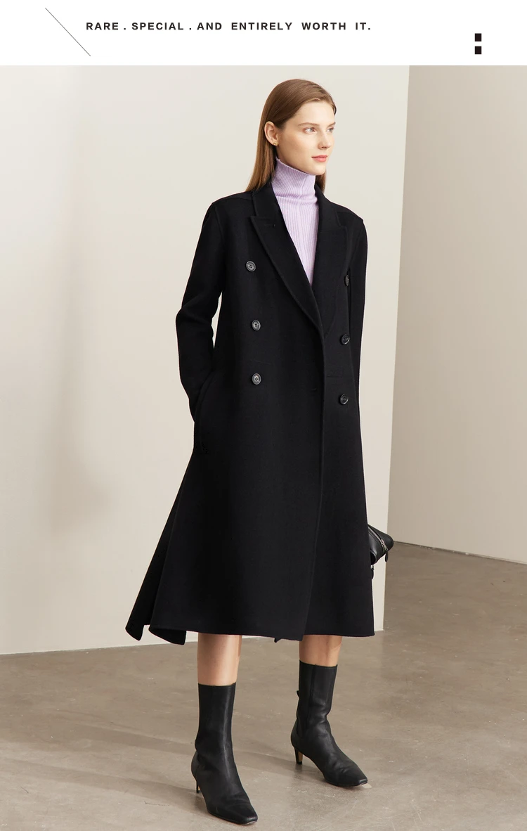 AMII Minimalismo 100% Cappotto di Lana Delle Donne 2024 di Inverno Doppio Petto Francese Elegante Pendolare Allentato Giacca Lunga Abbigliamento 12270566
