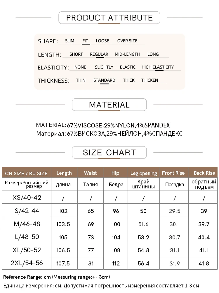 I pantaloni sono davvero stilosi. Per una taglia 84-106 vestono in modo semi-rilassato, con 2-3 cm extra alla moda sui fianchi. Mantengono bene la forma e snelliscono. Sento che sono sia eleganti che pratici. I pantaloni sono neri e non si vede nulla dalla foto.