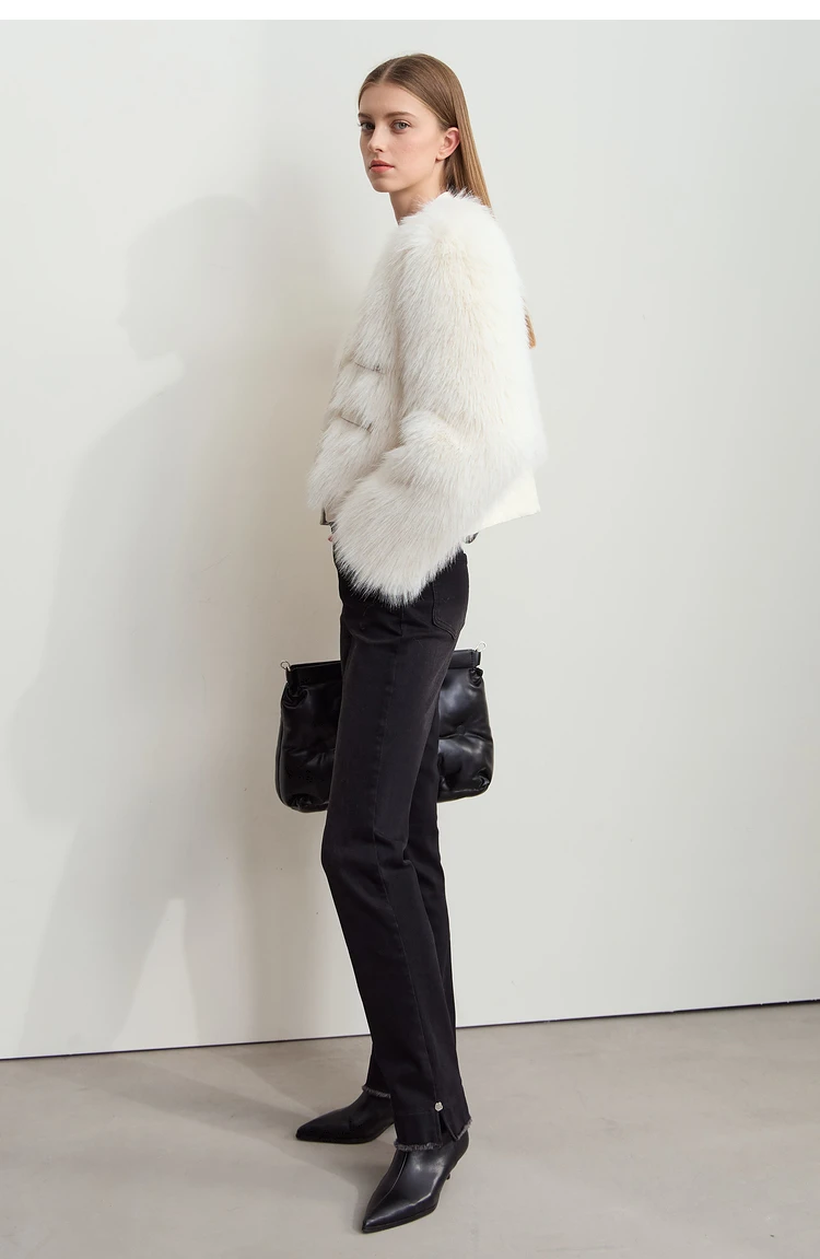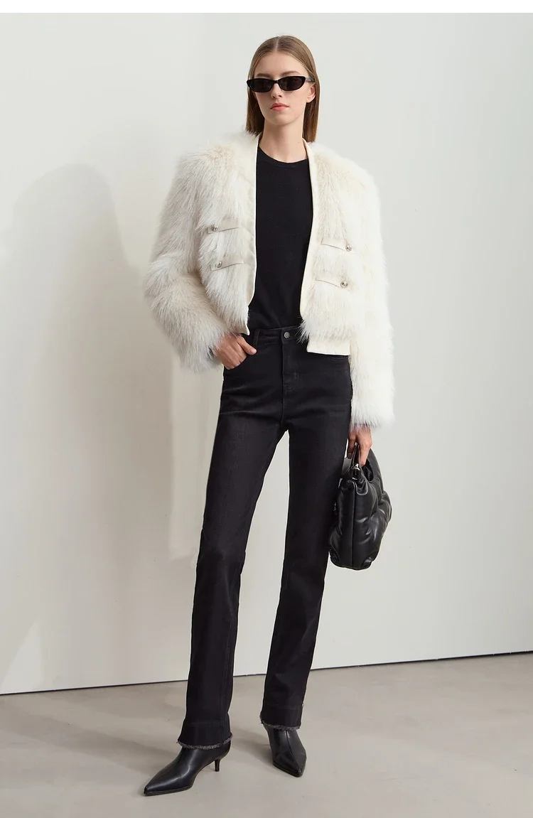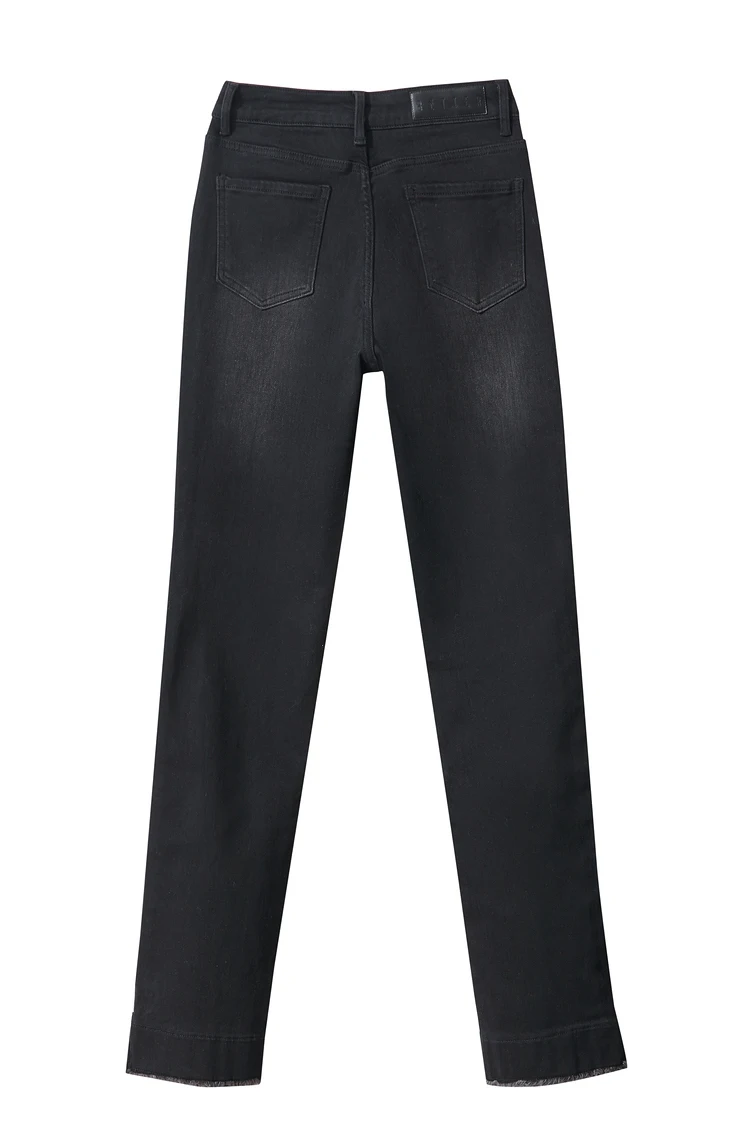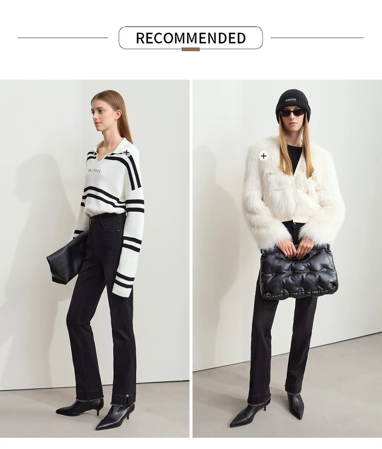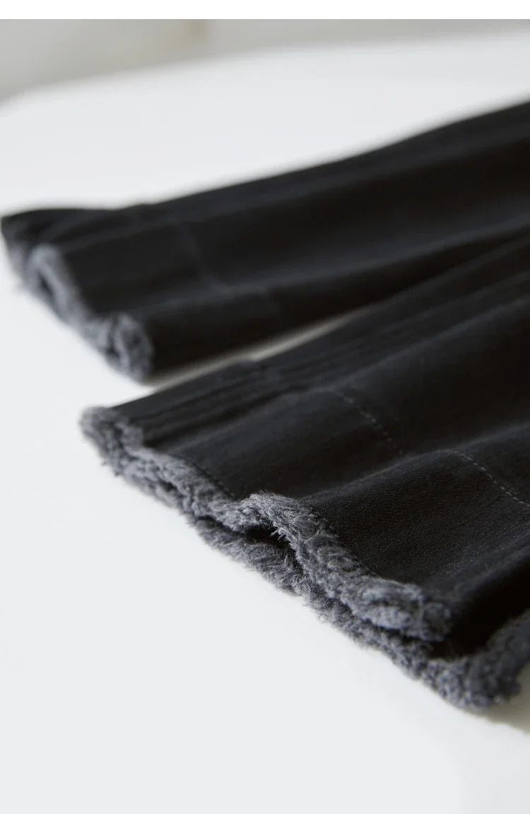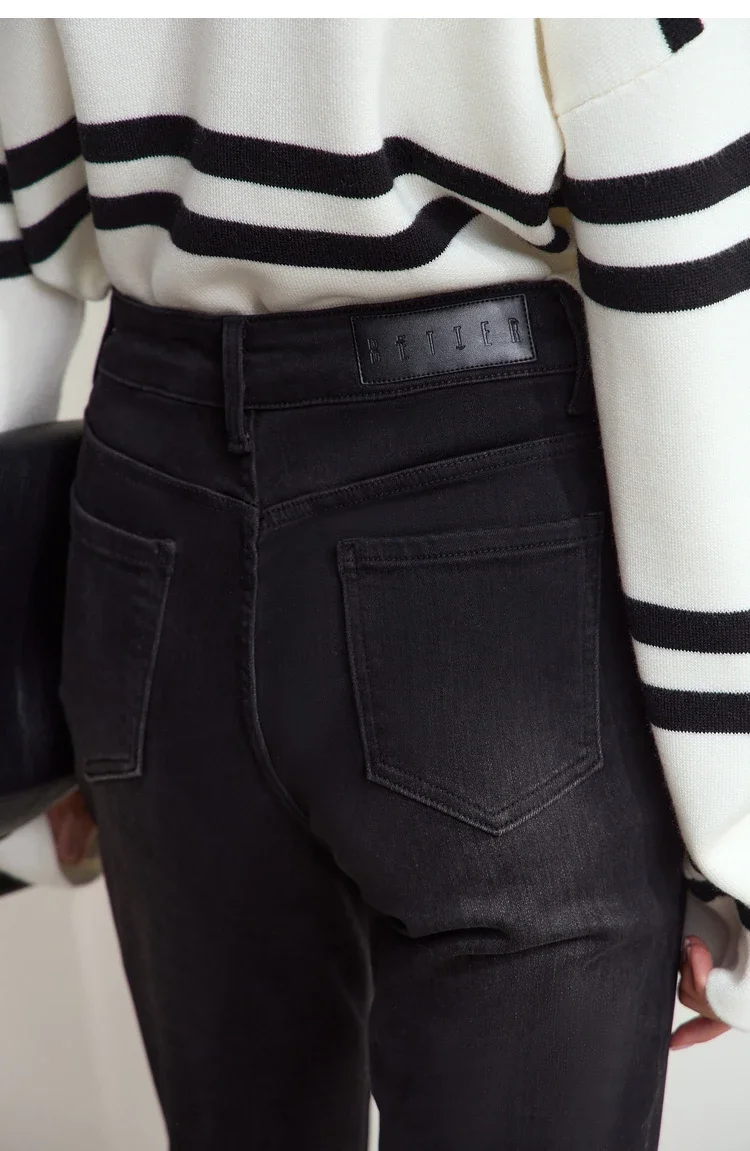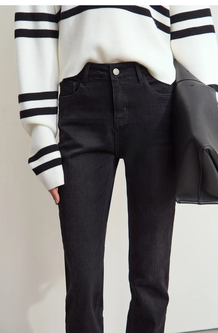 AMII Minimalista 2025 Nuovi Jeans Slim Abbigliamento Donna Casual Bordo Ruvido Lucido Diviso Piedi Stretti Inverno Pantaloni Neri 12444148