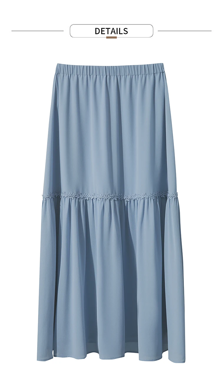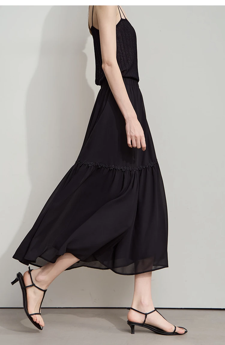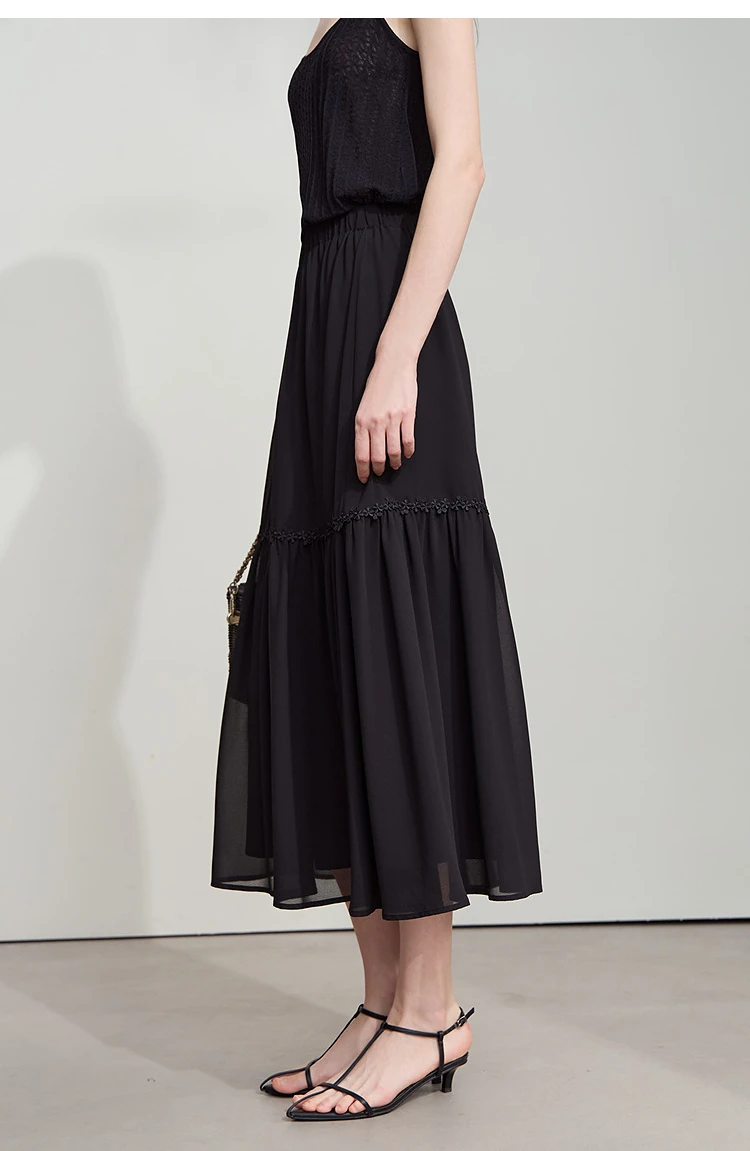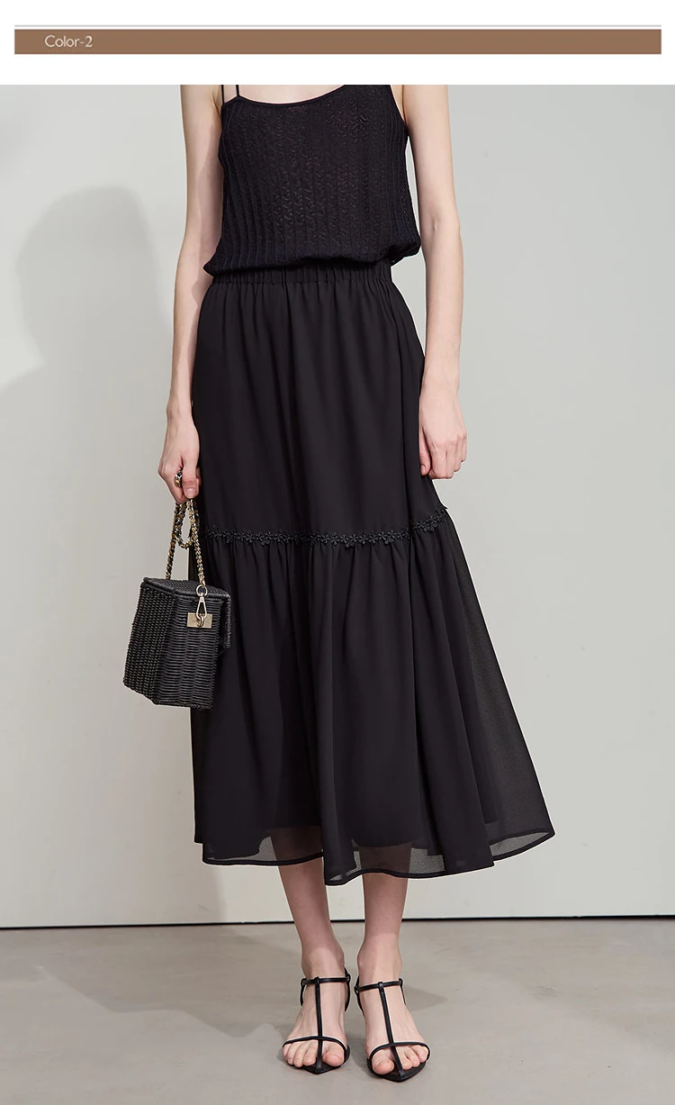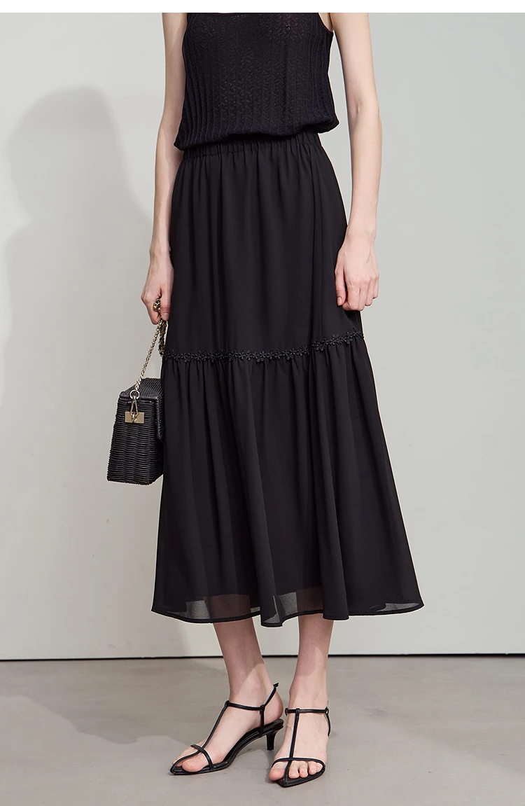 Amii Minimalista Allentato Sottile Gonna di Chiffon 2025 Estate Nuovo Ufficio Eleganza Pizzo A-Line Gonna Midi Gonna Nera Femminile 12542287