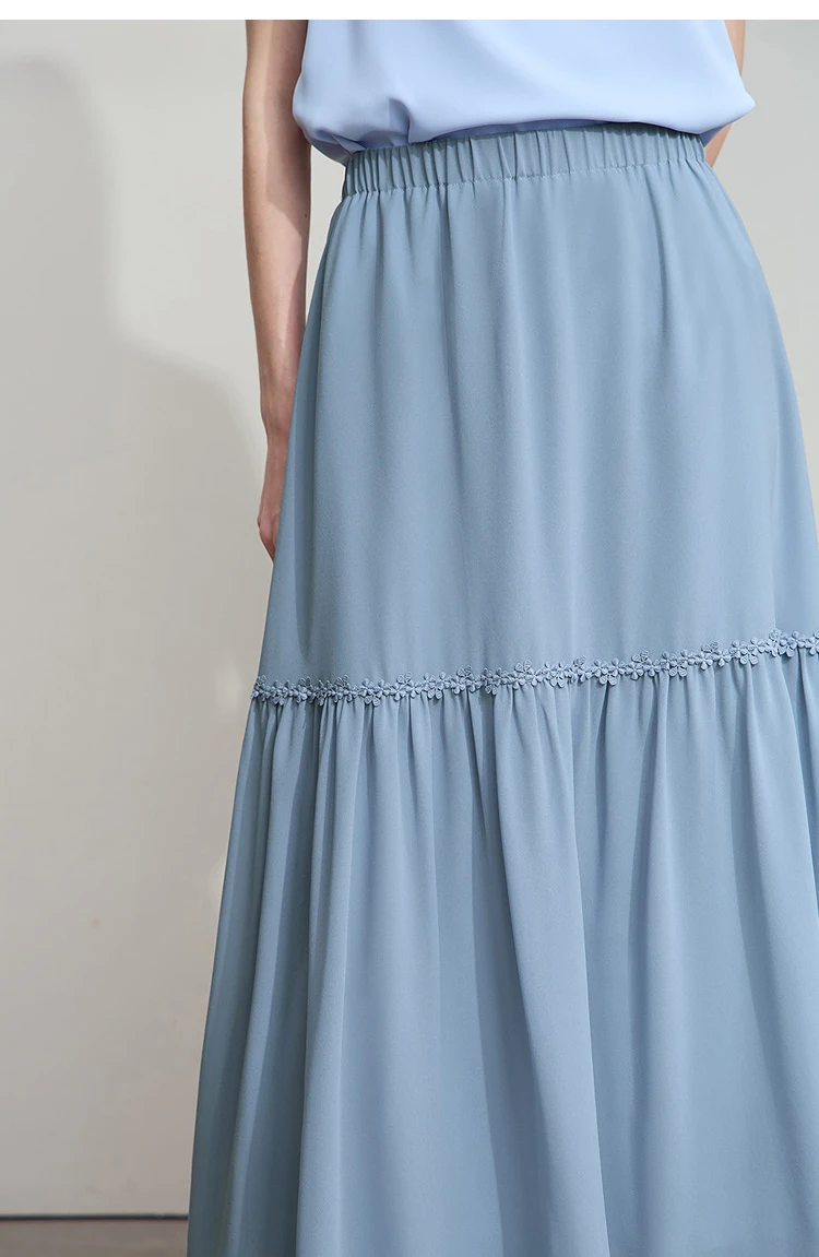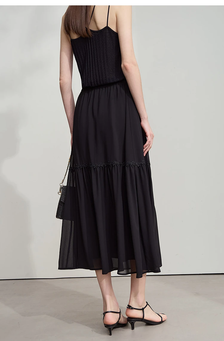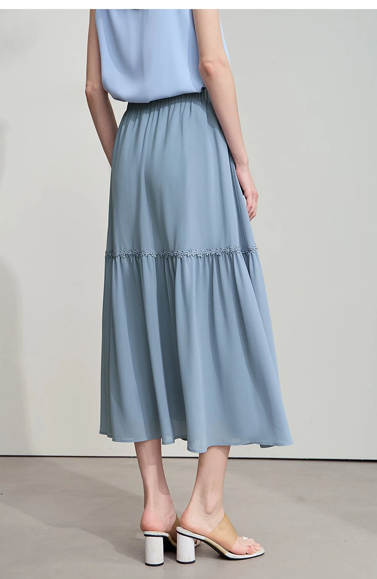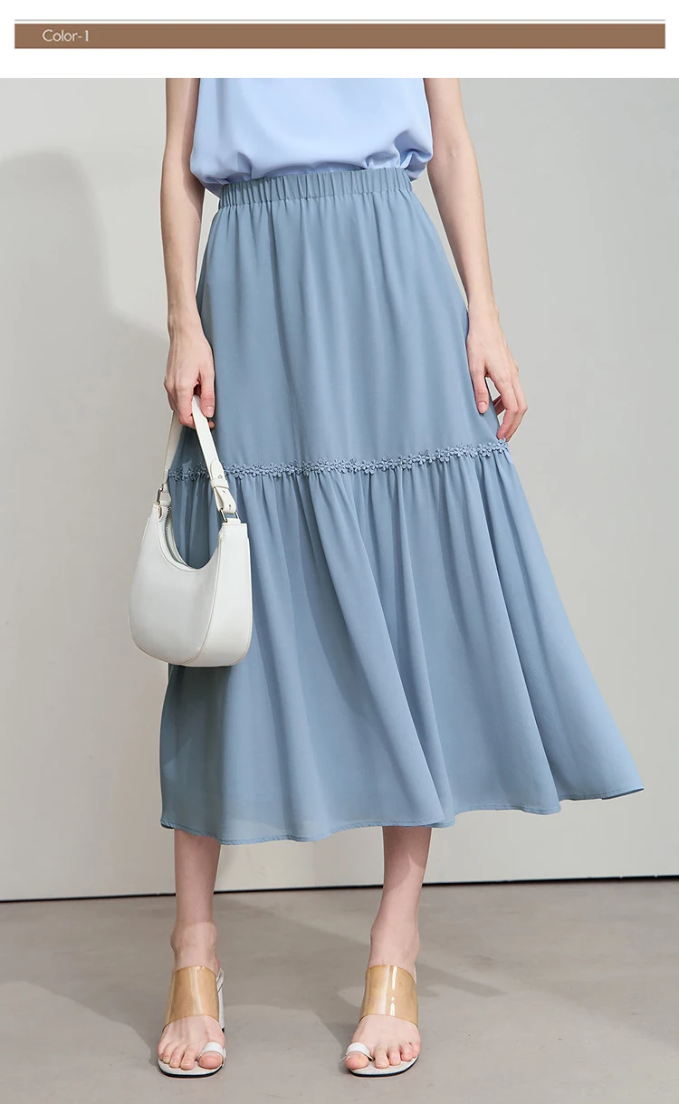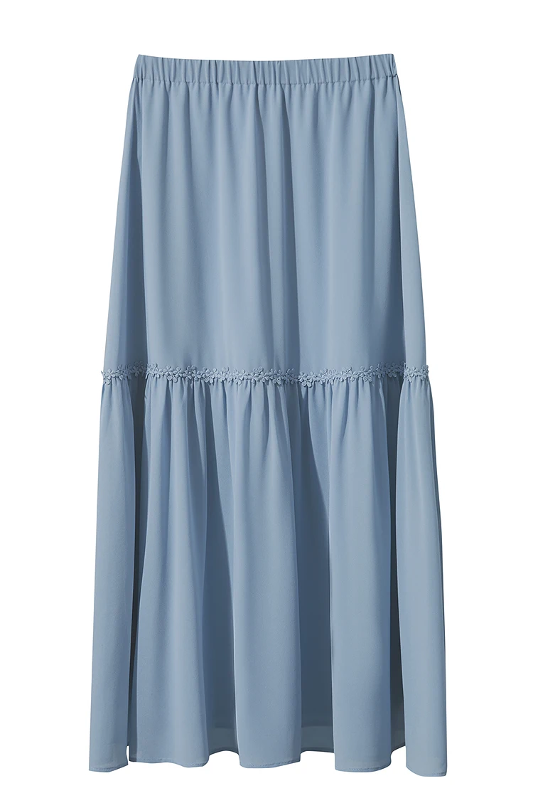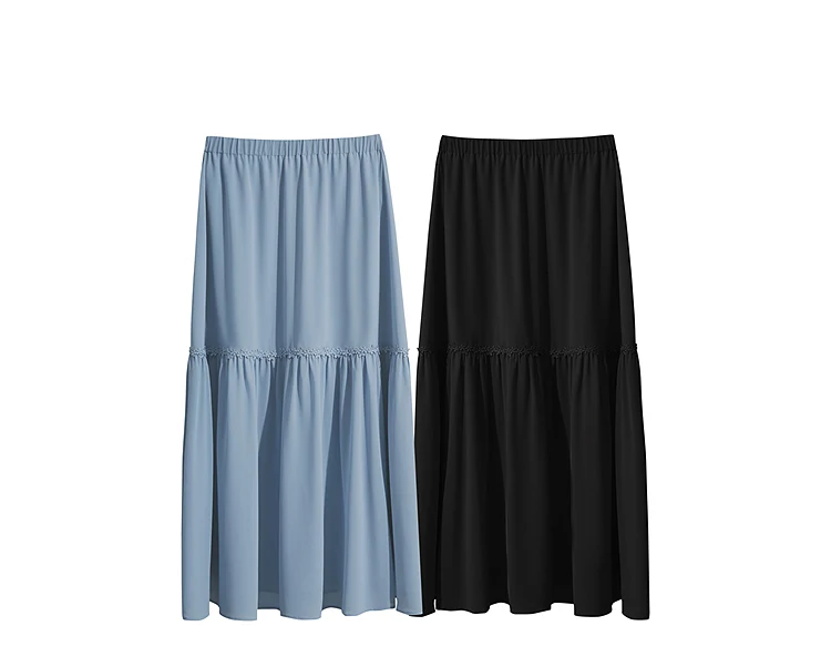 Amii Minimalista Allentato Sottile Gonna di Chiffon 2025 Estate Nuovo Ufficio Eleganza Pizzo A-Line Gonna Midi Gonna Nera Femminile 12542287