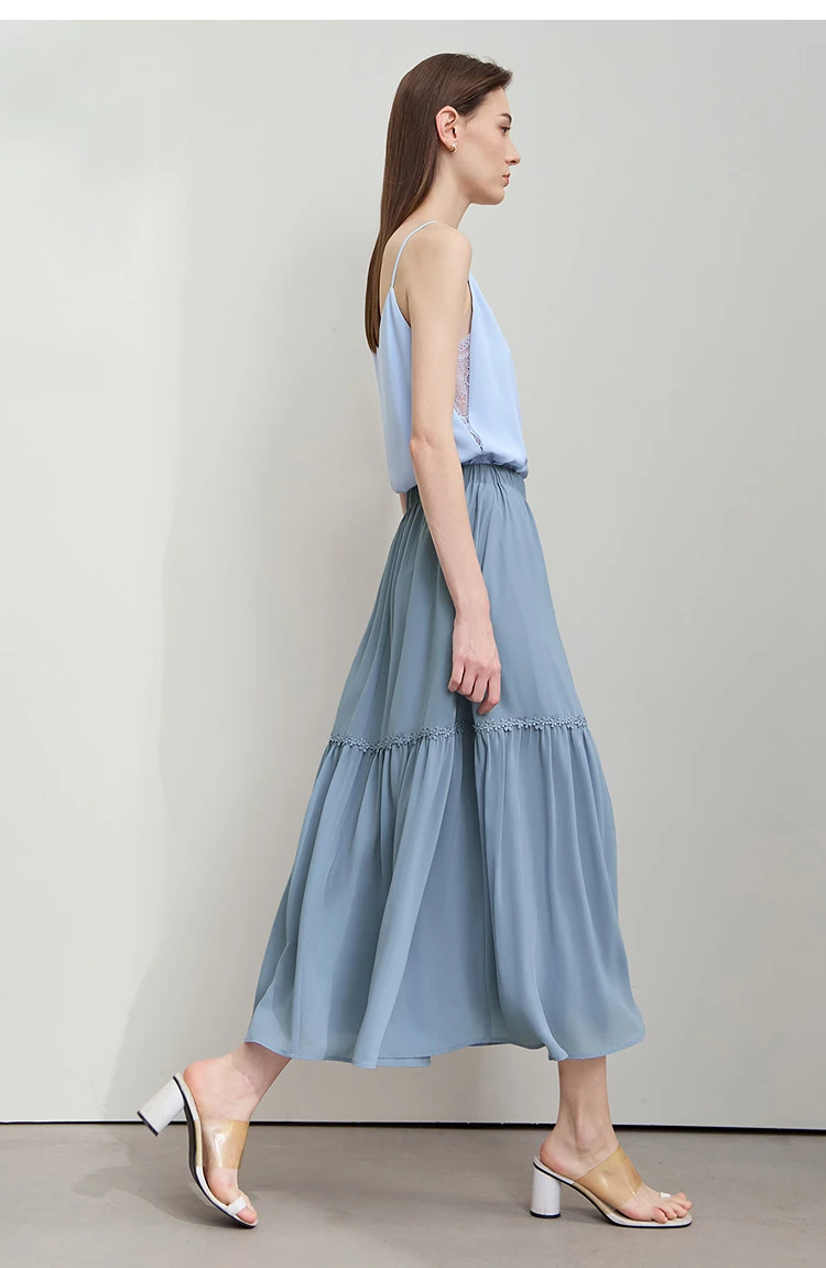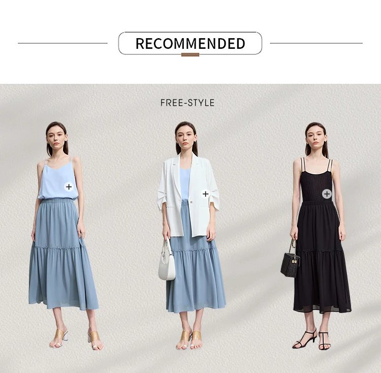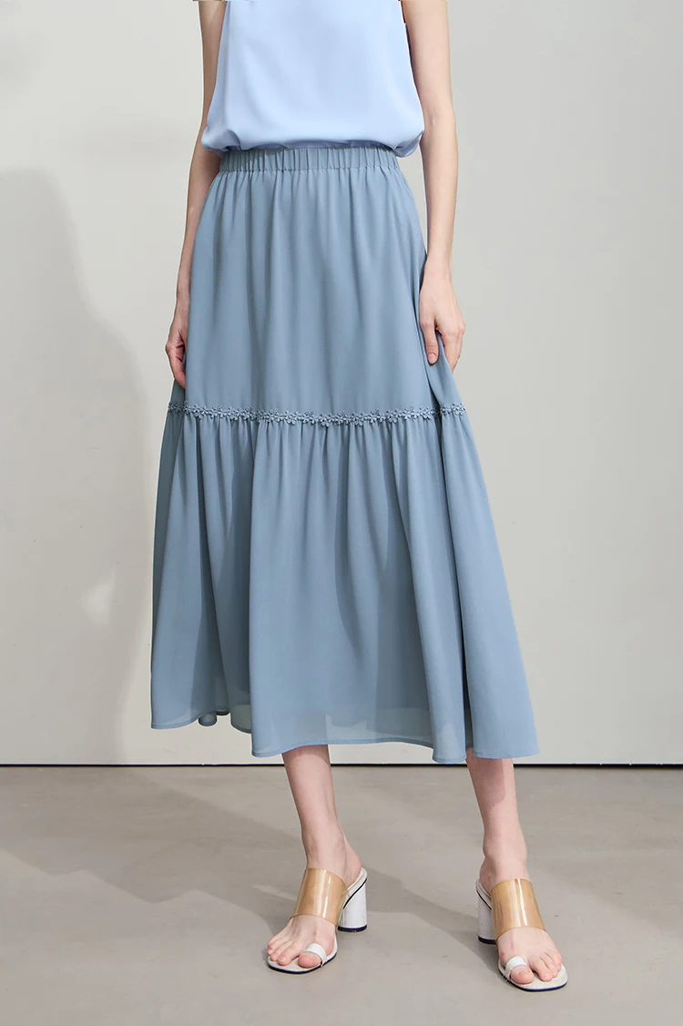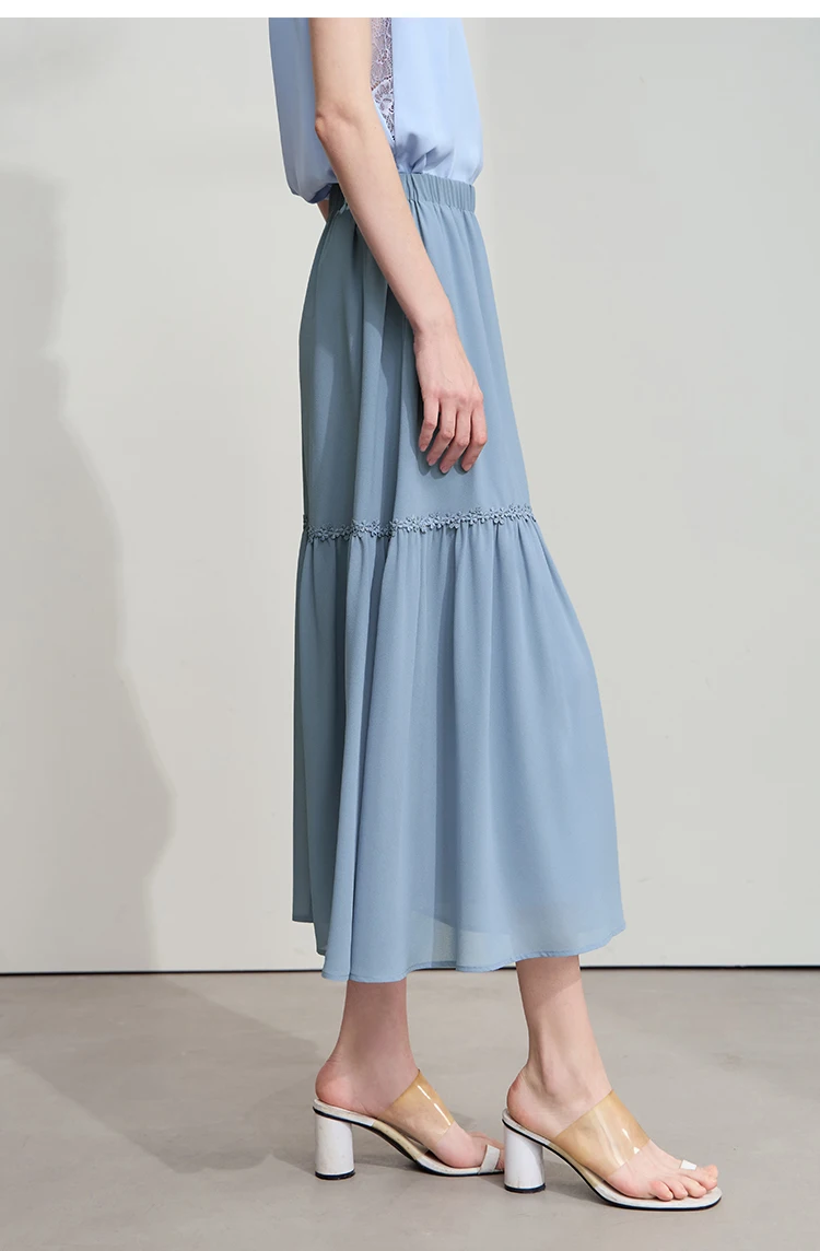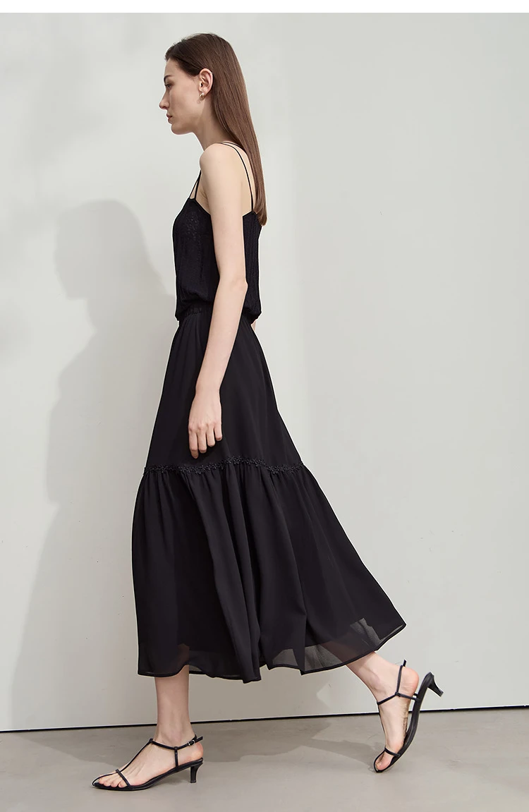 Amii Minimalista Allentato Sottile Gonna di Chiffon 2025 Estate Nuovo Ufficio Eleganza Pizzo A-Line Gonna Midi Gonna Nera Femminile 12542287