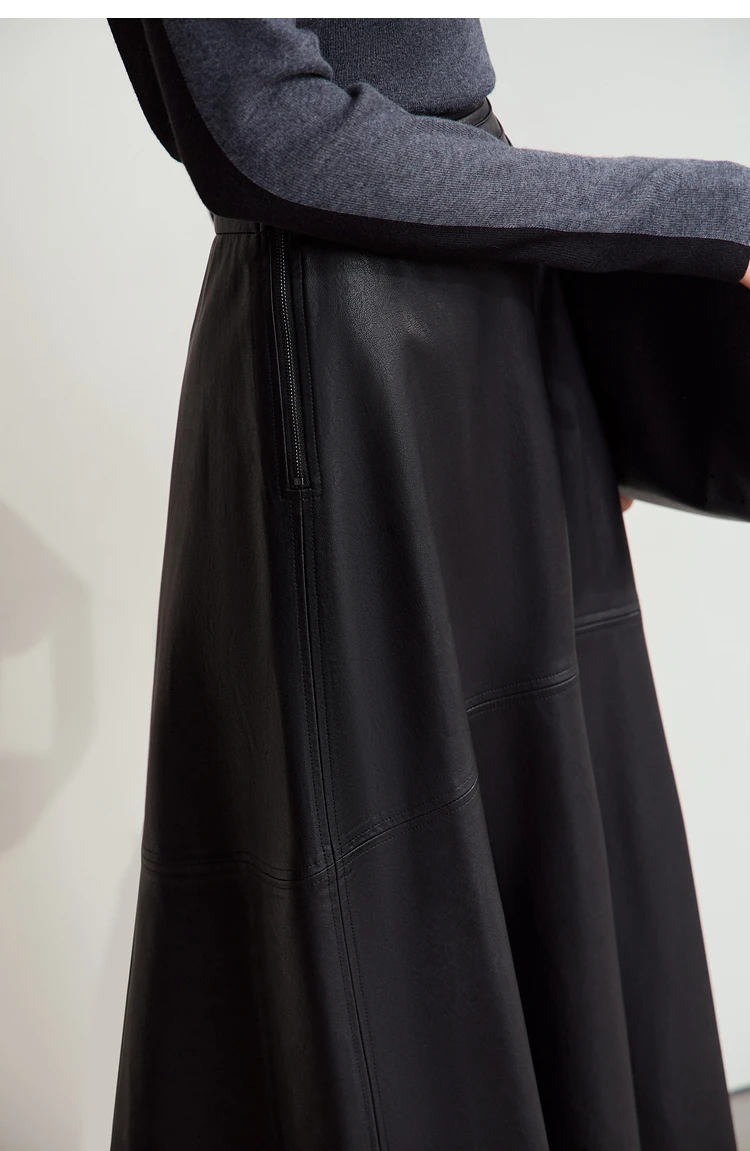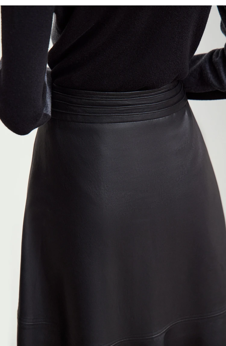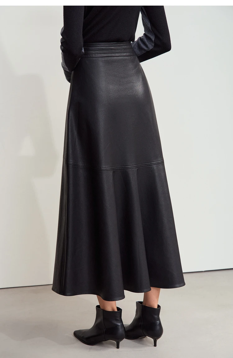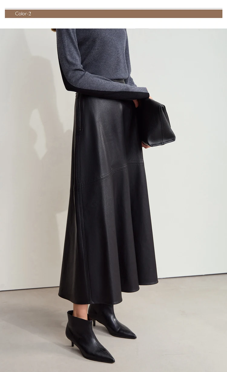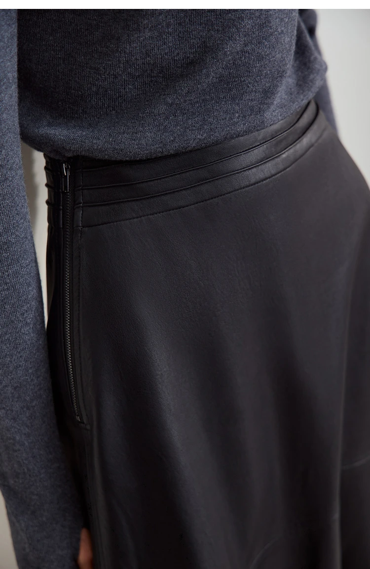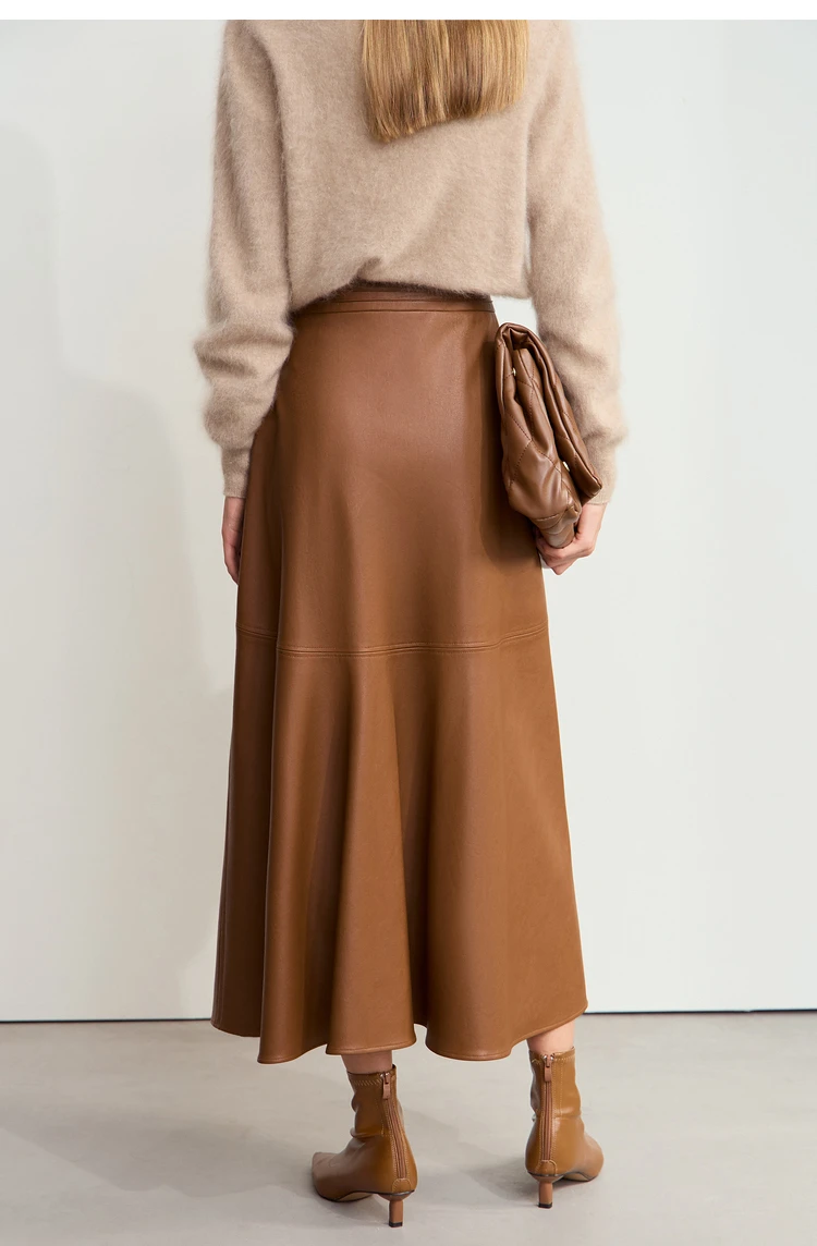 AMII Minimalista Elegante Pendolare Ecologico PU Gonna di Pelle 2024 Inverno delle Nuove Donne Allentato A forma di Gonna 12444181