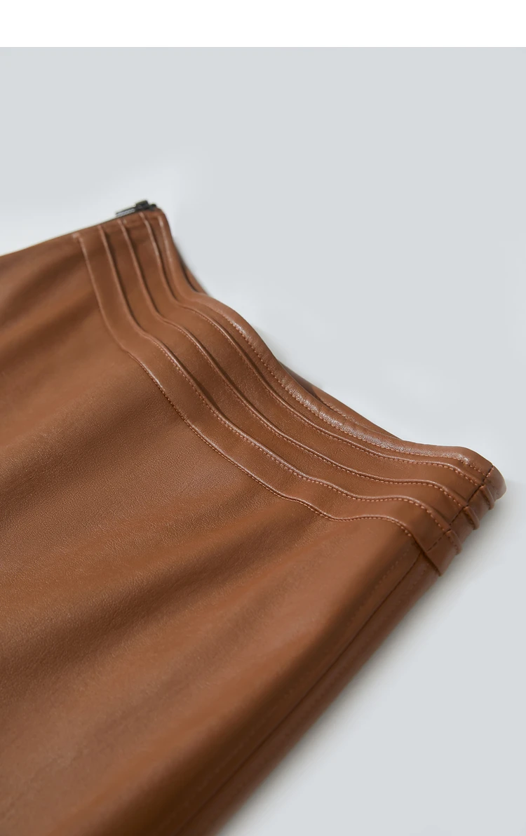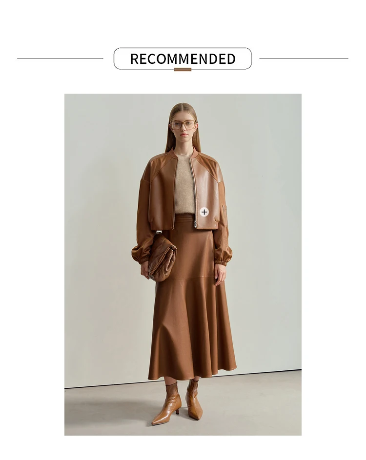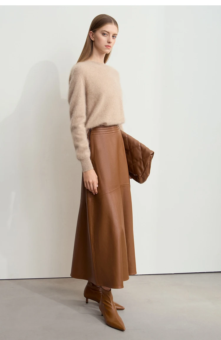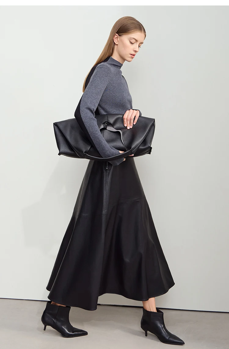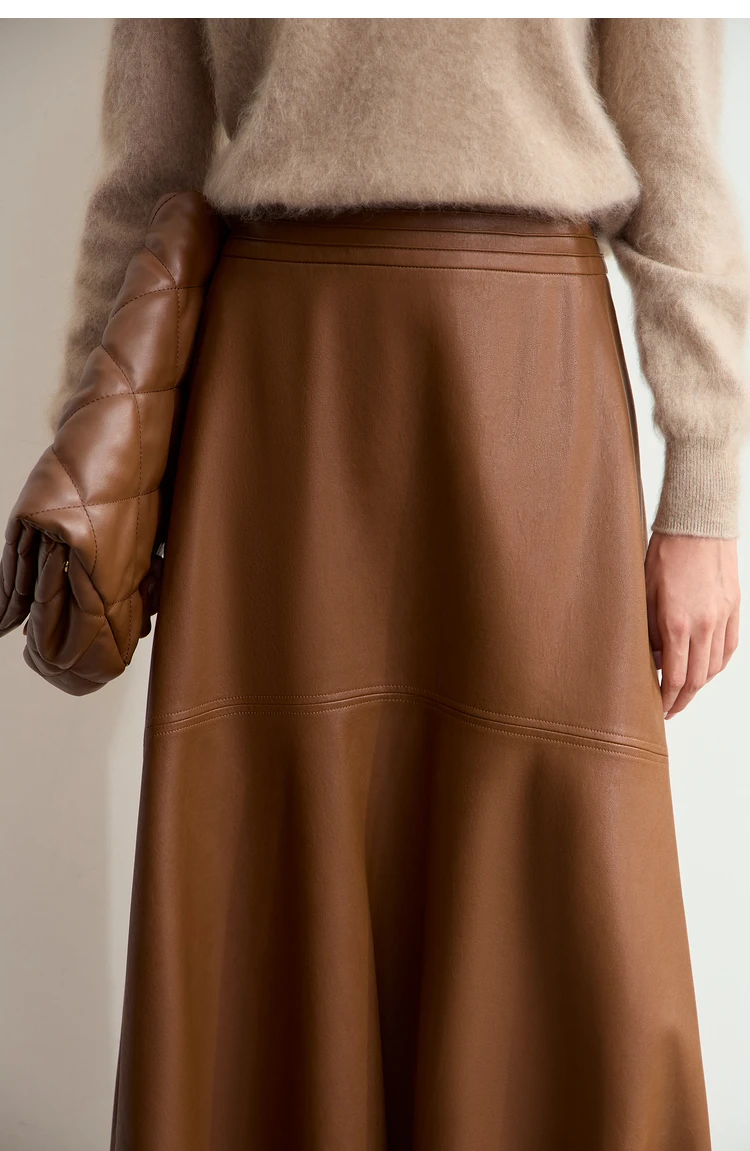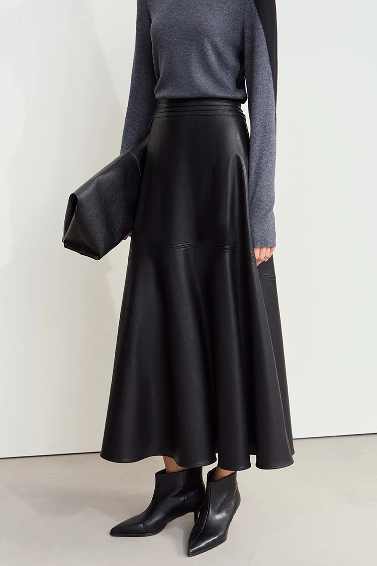 AMII Minimalista Elegante Pendolare Ecologico PU Gonna di Pelle 2024 Inverno delle Nuove Donne Allentato A forma di Gonna 12444181
