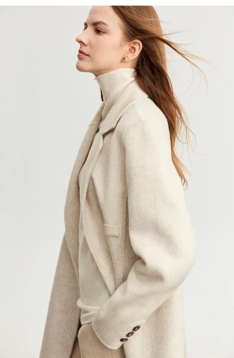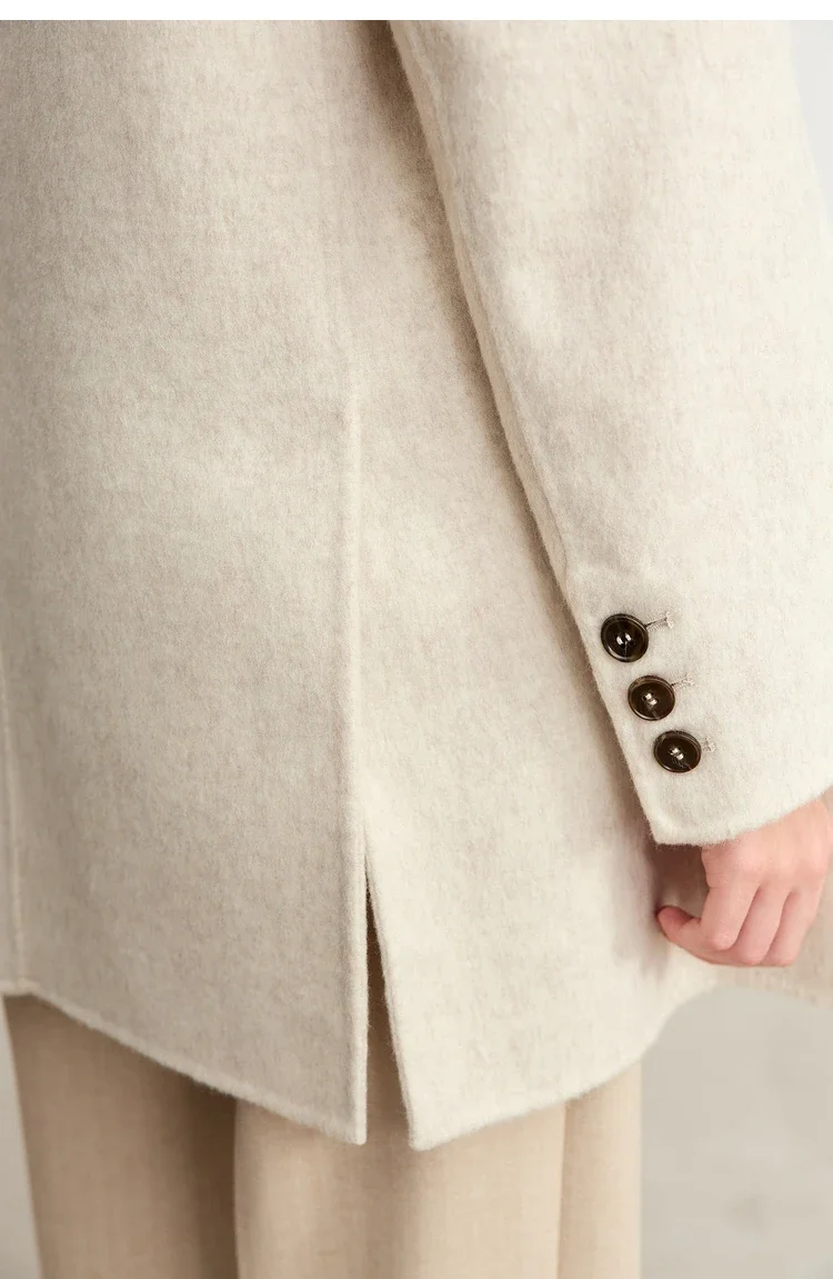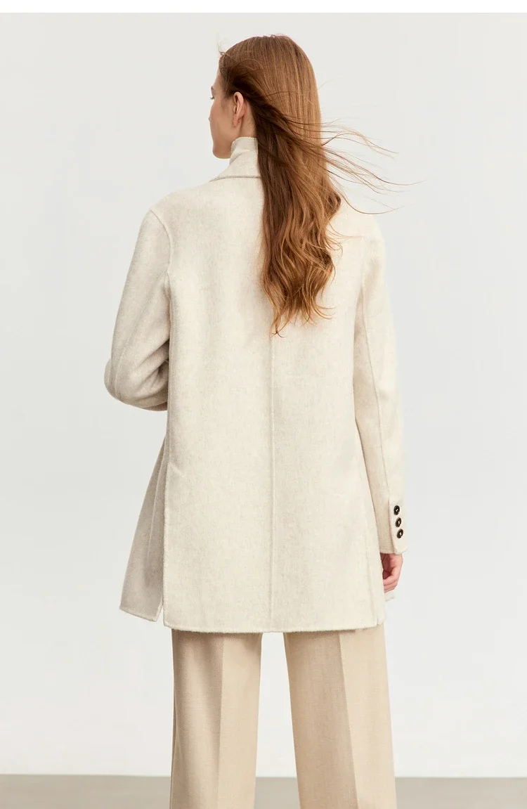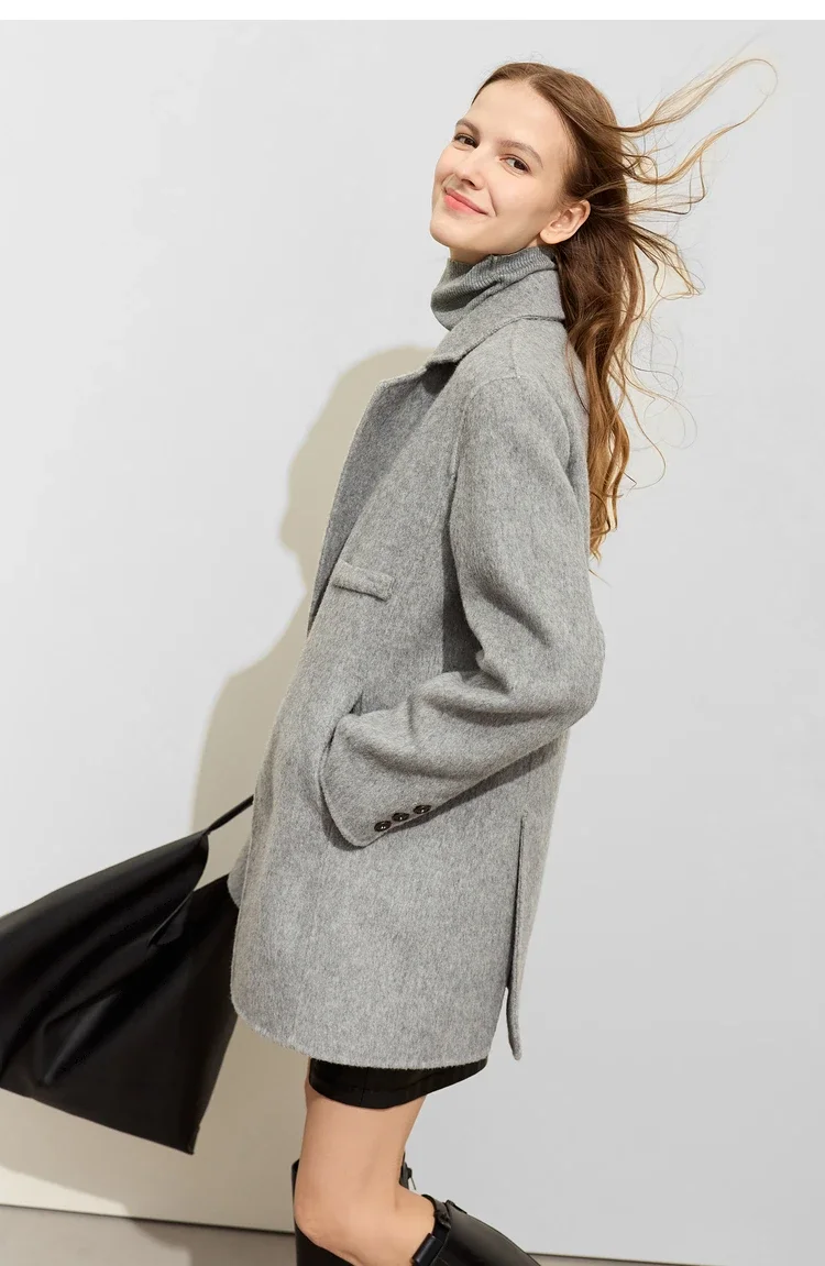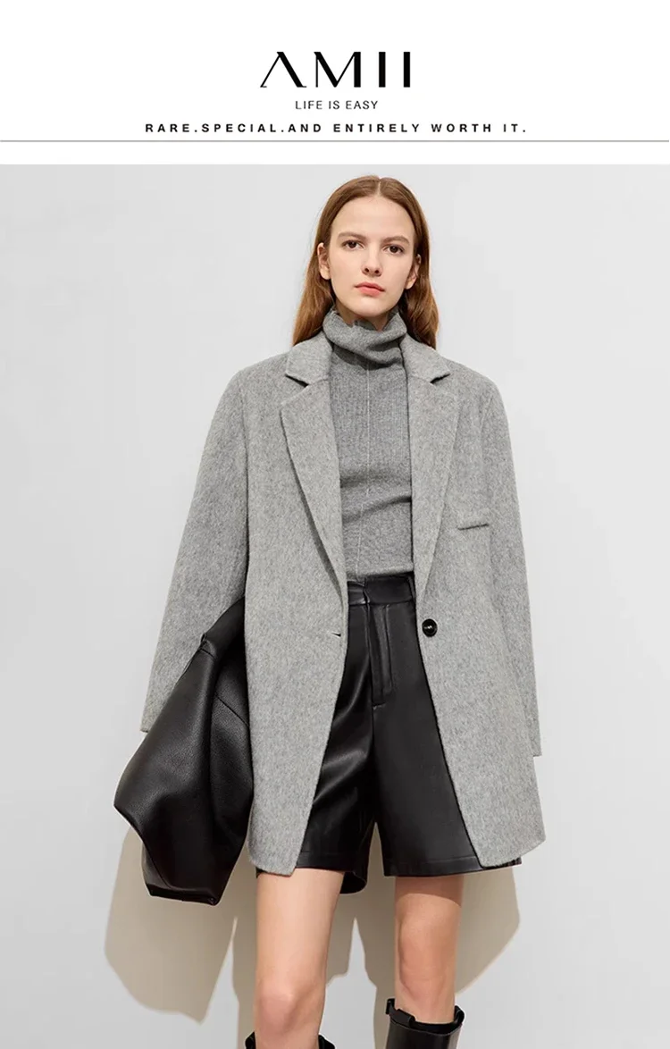 AMII Minimalista Old Money Cappotto di lana per le donne 2023 Inverno con spacco Blazer Colletto Medio lungo Giacca di tweed a doppia faccia 72324001