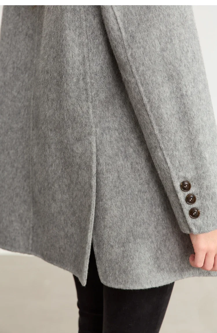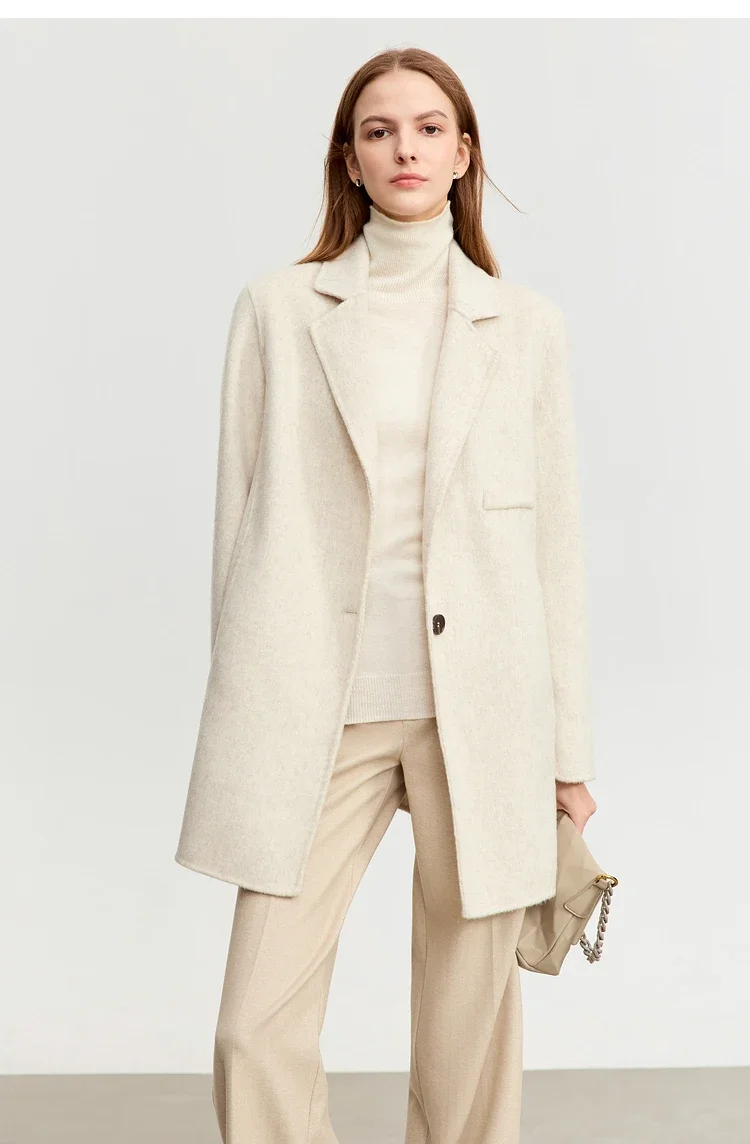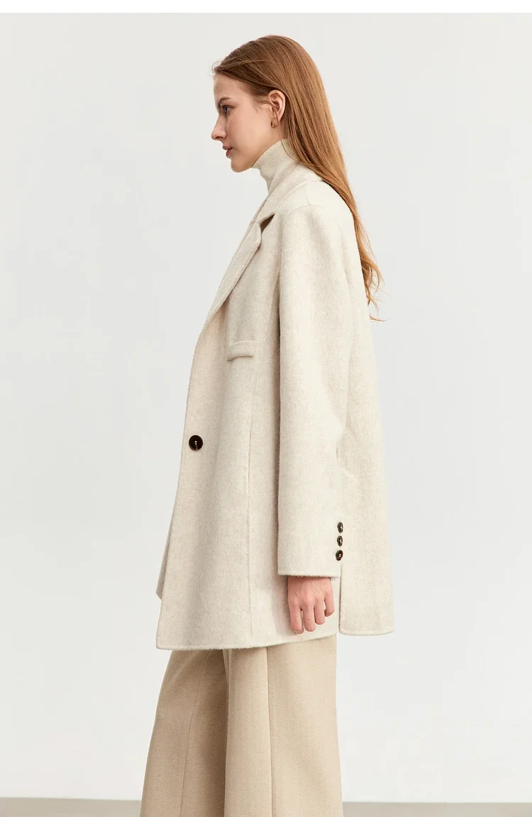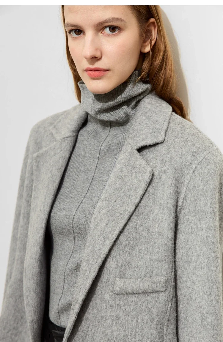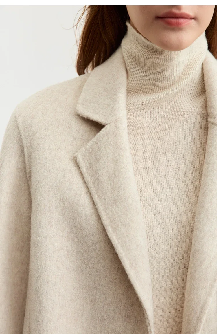 AMII Minimalista Old Money Cappotto di lana per le donne 2023 Inverno con spacco Blazer Colletto Medio lungo Giacca di tweed a doppia faccia 72324001
