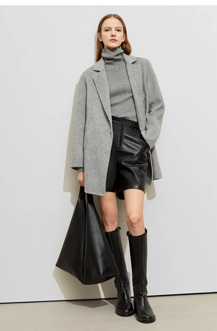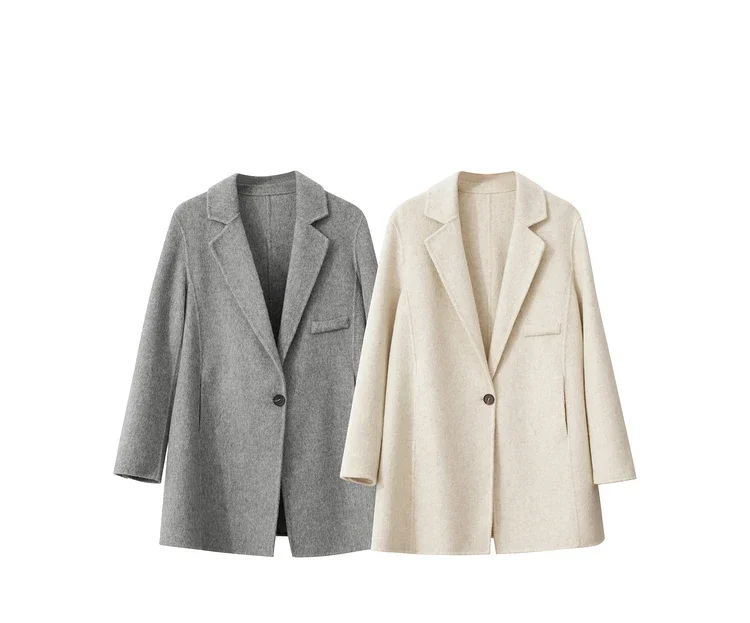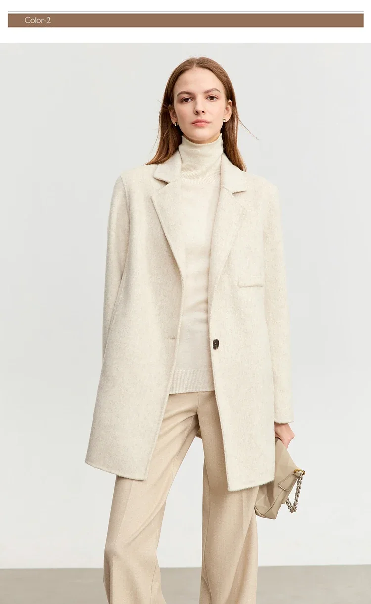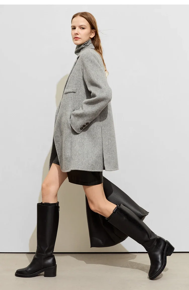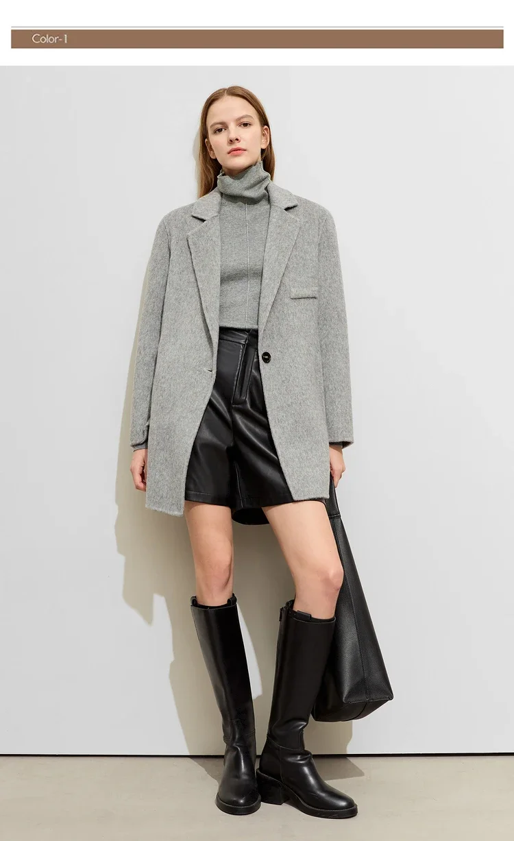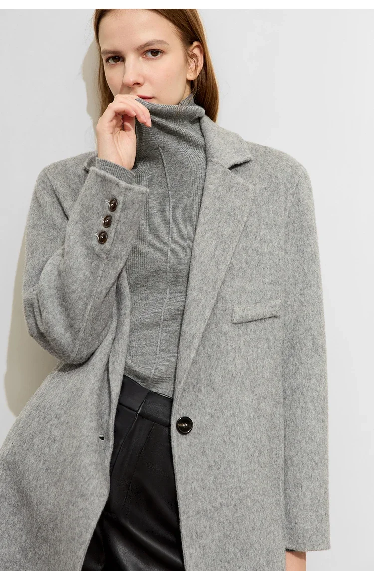AMII Minimalista Old Money Cappotto di lana per le donne 2023 Inverno con spacco Blazer Colletto Medio lungo Giacca di tweed a doppia faccia 72324001