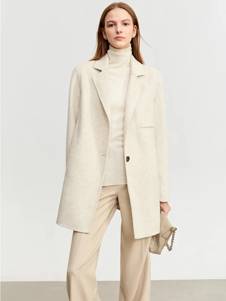 AMII Minimalista Old Money Cappotto di lana per le donne 2023 Inverno con spacco Blazer Colletto Medio lungo Giacca di tweed a doppia faccia 72324001