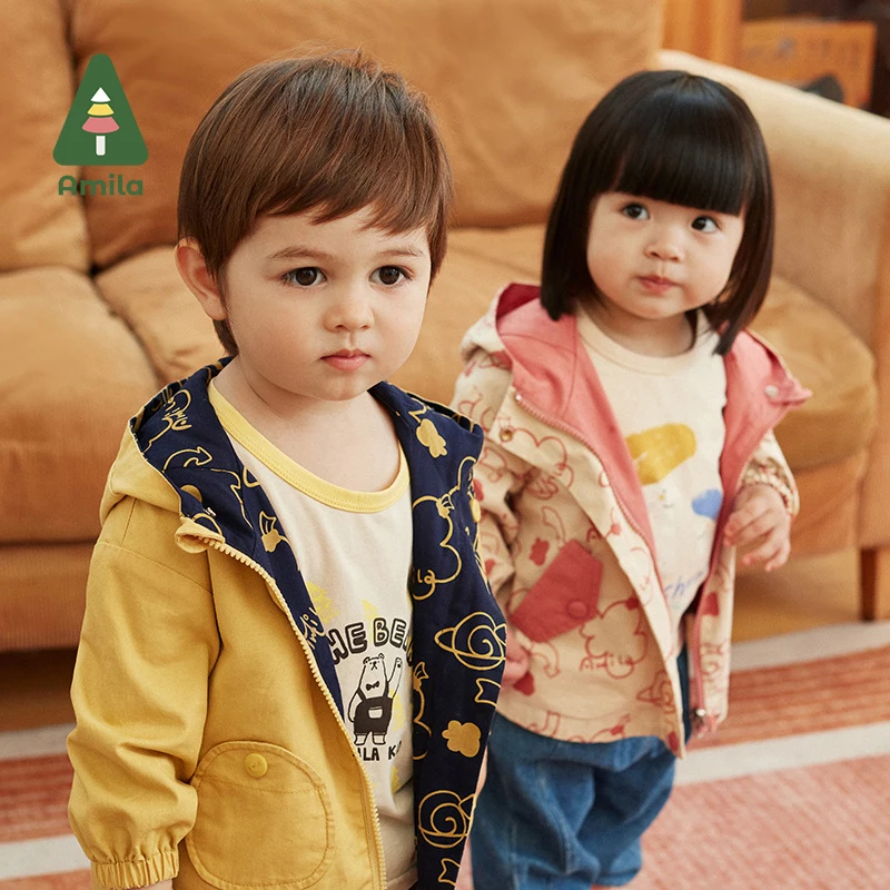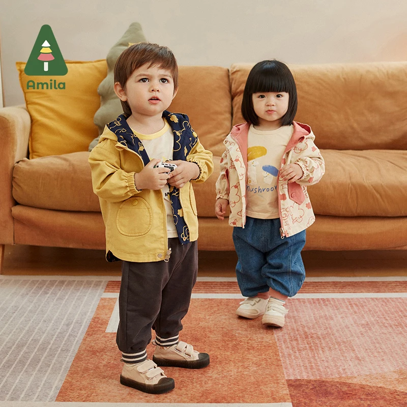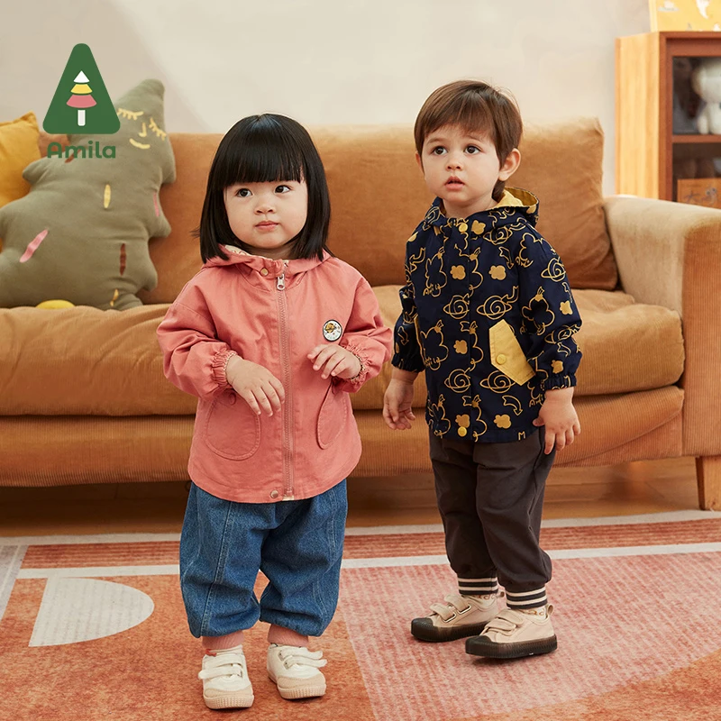 Amila Baby Coat 2022 primavera e autunno nuovo tinta unita All-match ragazzi e ragazze Casual sciolto abbigliamento per bambini cappotto di moda