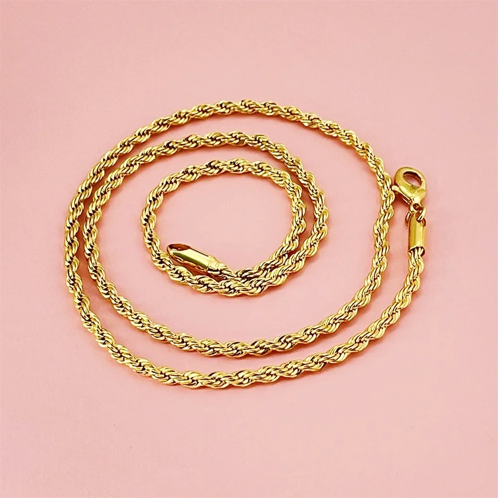 Andara Luxury 925 Sterling Silver placcato oro 3MM collana di corda intrecciata per donna uomo accessori gioielli 40-60CM