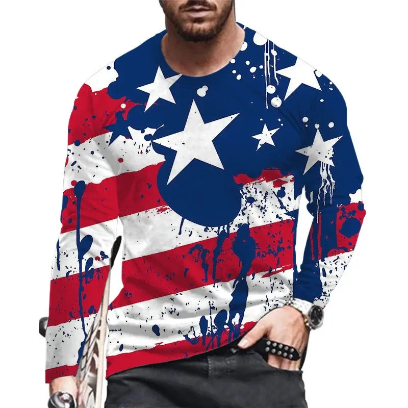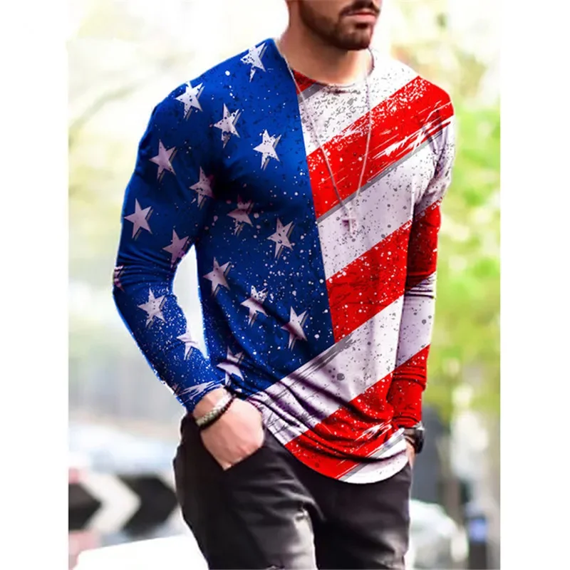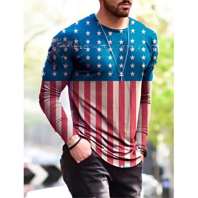 Animali Aquila Modello 3D Stampato Bandiera nazionale degli Stati Uniti T-shirt per uomo Tees Primavera Autunno T-shirt oversize O-Collo Top Manica lunga