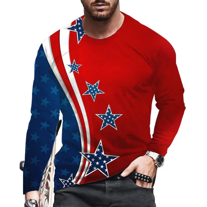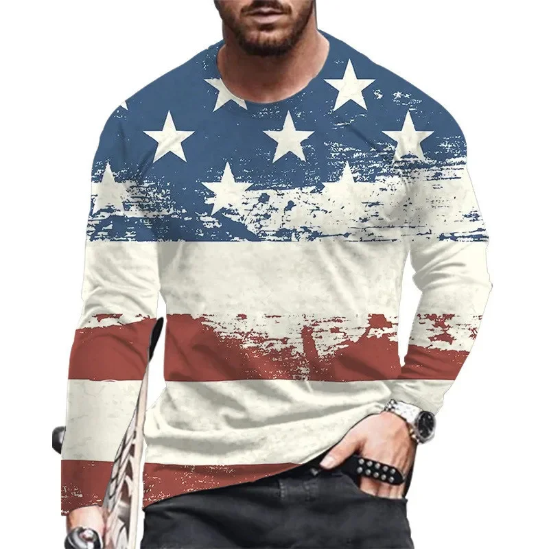 Animali Aquila Modello 3D Stampato Bandiera nazionale degli Stati Uniti T-shirt per uomo Tees Primavera Autunno T-shirt oversize O-Collo Top Manica lunga