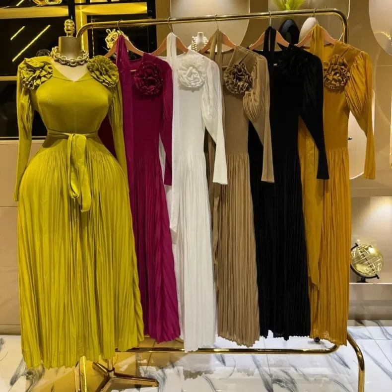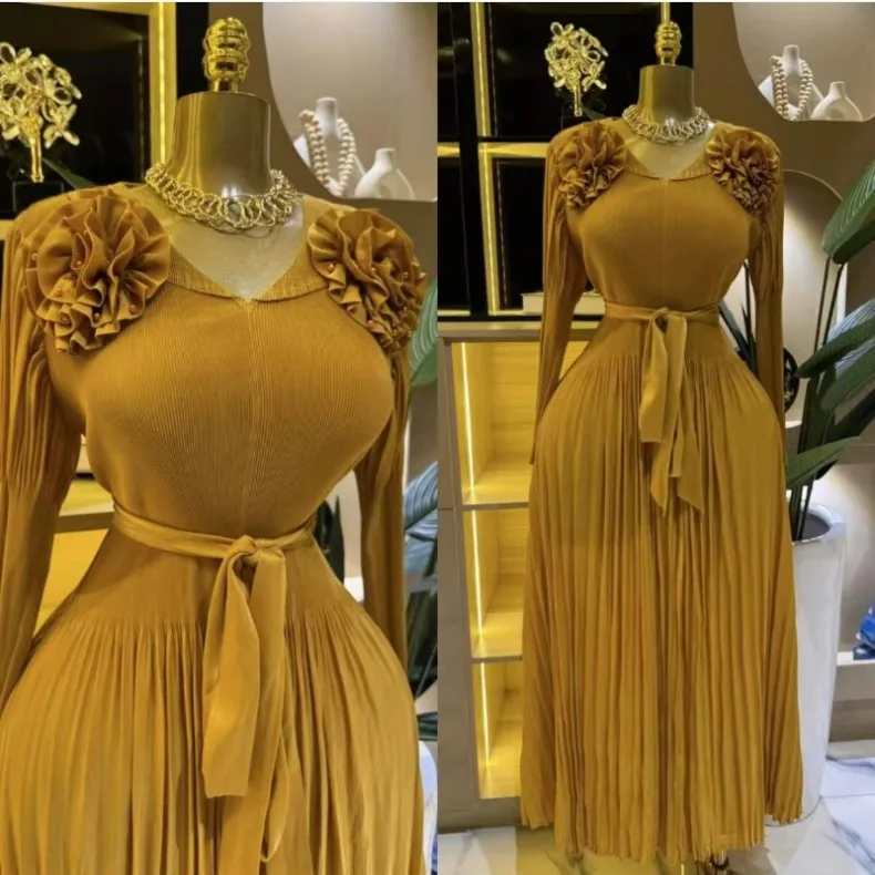 ANLAN Flower Design Plus Size Abito a pieghe Moda Maniche lunghe Cintura Vita raccolta Abiti da festa solidi per le donne 2025 Nuovo 2A96 1ANLAN Flower Design Plus Size Abito a pieghe Moda Maniche lunghe Cintura Vita raccolta Abiti da festa solidi per le donne 2025 Nuovo 2A96