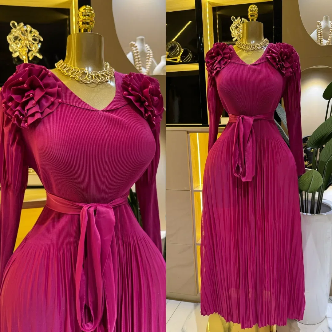 ANLAN Flower Design Plus Size Abito a pieghe Moda Maniche lunghe Cintura Vita raccolta Abiti da festa solidi per le donne 2025 Nuovo 2A96 1ANLAN Flower Design Plus Size Abito a pieghe Moda Maniche lunghe Cintura Vita raccolta Abiti da festa solidi per le donne 2025 Nuovo 2A96