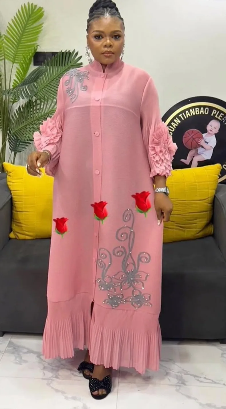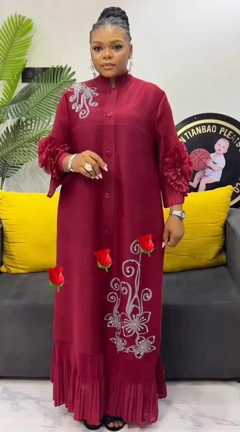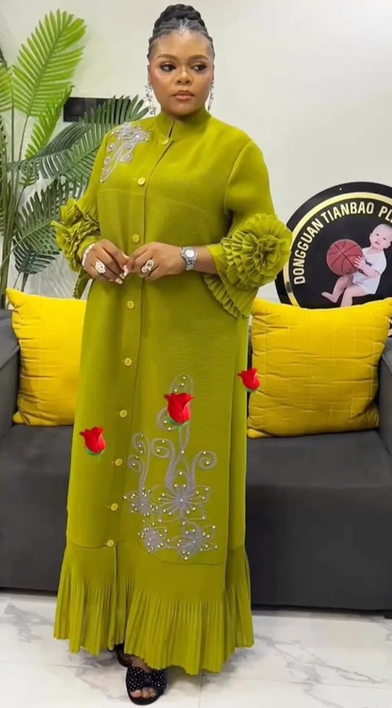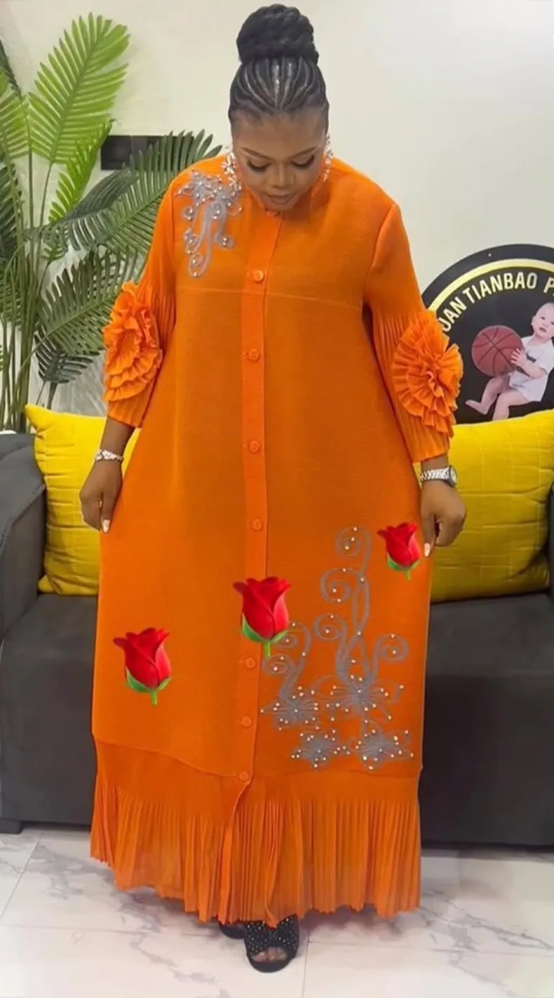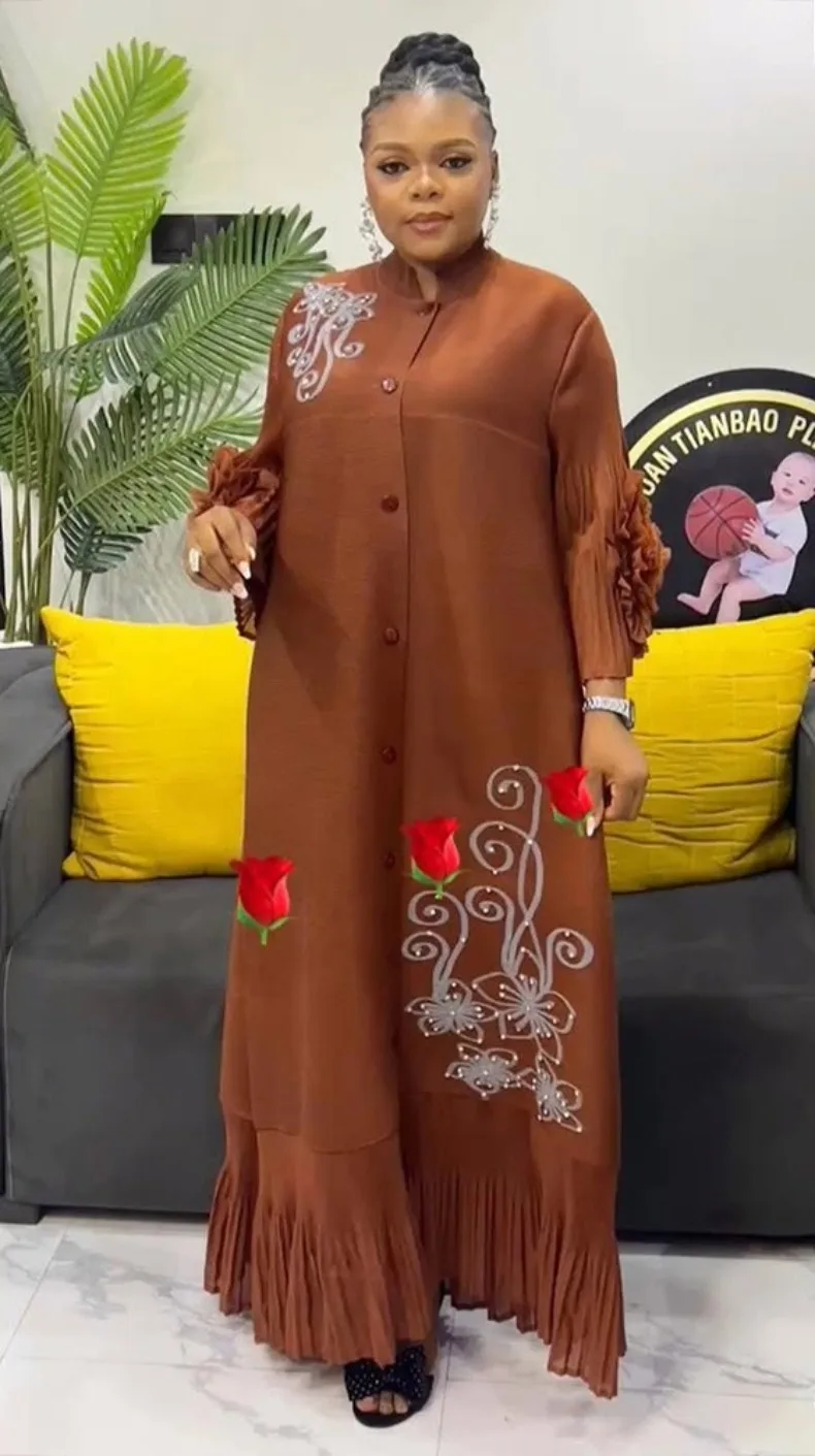 ANLAN Stampa di moda Abito lungo a pieghe Donna Risvolto Maniche floreali Design Monopetto Abiti a trapezio 2025 Estate Nuovo 5AN6018