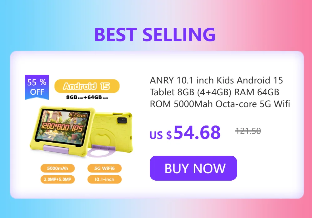 ANRY 2025 Tavoletta A523 da 10.1 pollici 5G Wifi Android 15 8 GB (4 + 4 Espandi) RAM + 64 GB ROM Display IPS 5000 Mah Doppia fotocamera Tavolette octa-core