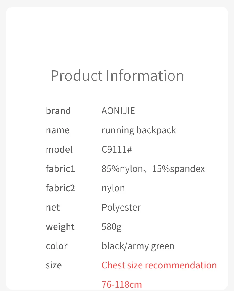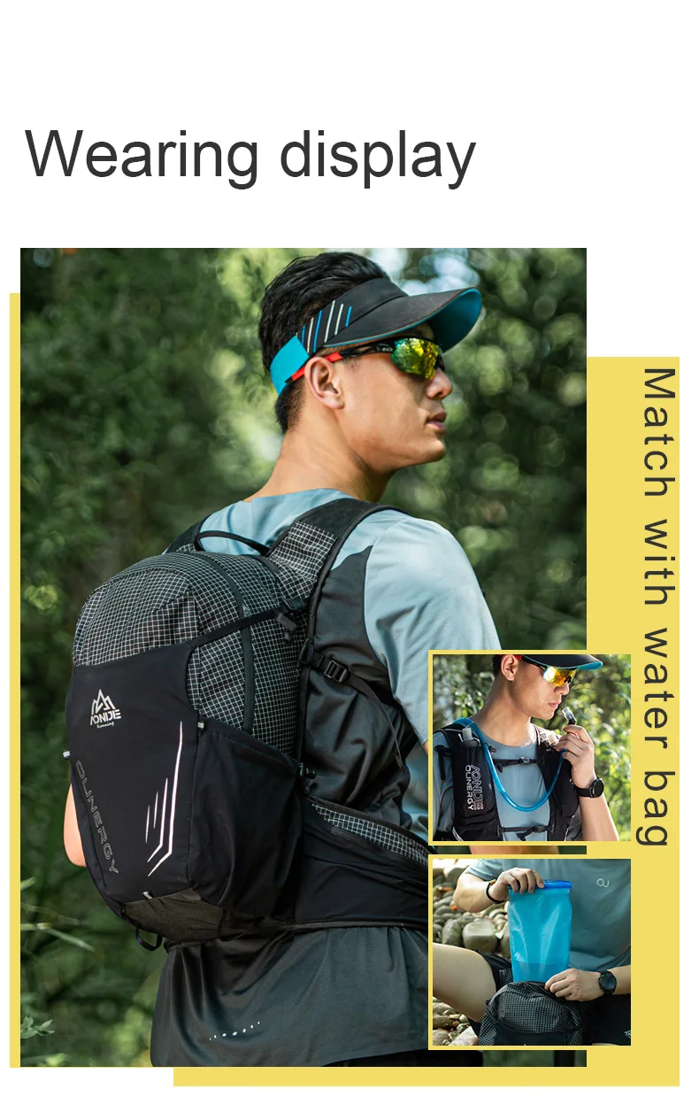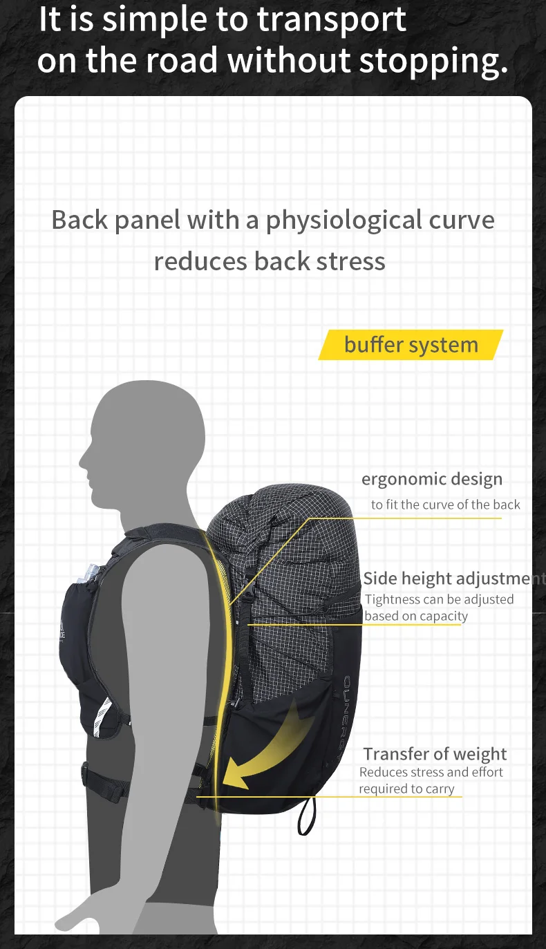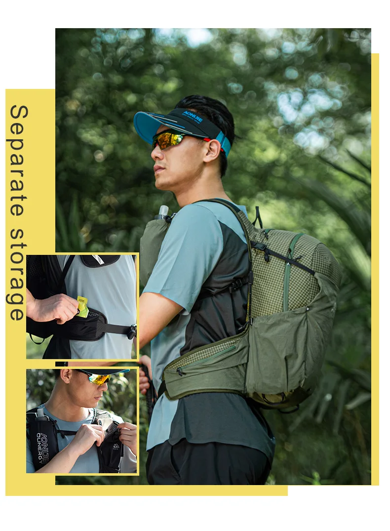 AONIJIE C9111 Zaino da campeggio ultraleggero da 30 litri Zaino da viaggio per trekking all’aperto Arrampicata Ciclismo Zaino da alpinismo Marca: AONIJIE Modello: C9111# Tessuto 1: 85% nylon, 15% elastan Tessuto 2: nylon Rete: poliestere Peso: circa 580 g Colore: nero/verde militare Misura torace consigliata: 76-118 cm