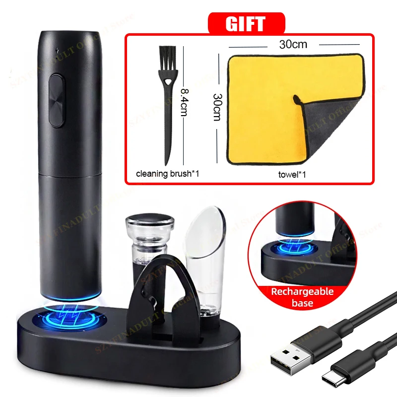 🍷 Set regalo cavatappi elettrico integrato: set regalo cavatappi multifunzione con tagliacapsule, tappo per vino, gorgogliatore, cavatappi, Spazzole e asciugamani detergenti, che fornisce una soluzione one-stop per aprire, perdere, pulire e conservare il vino.