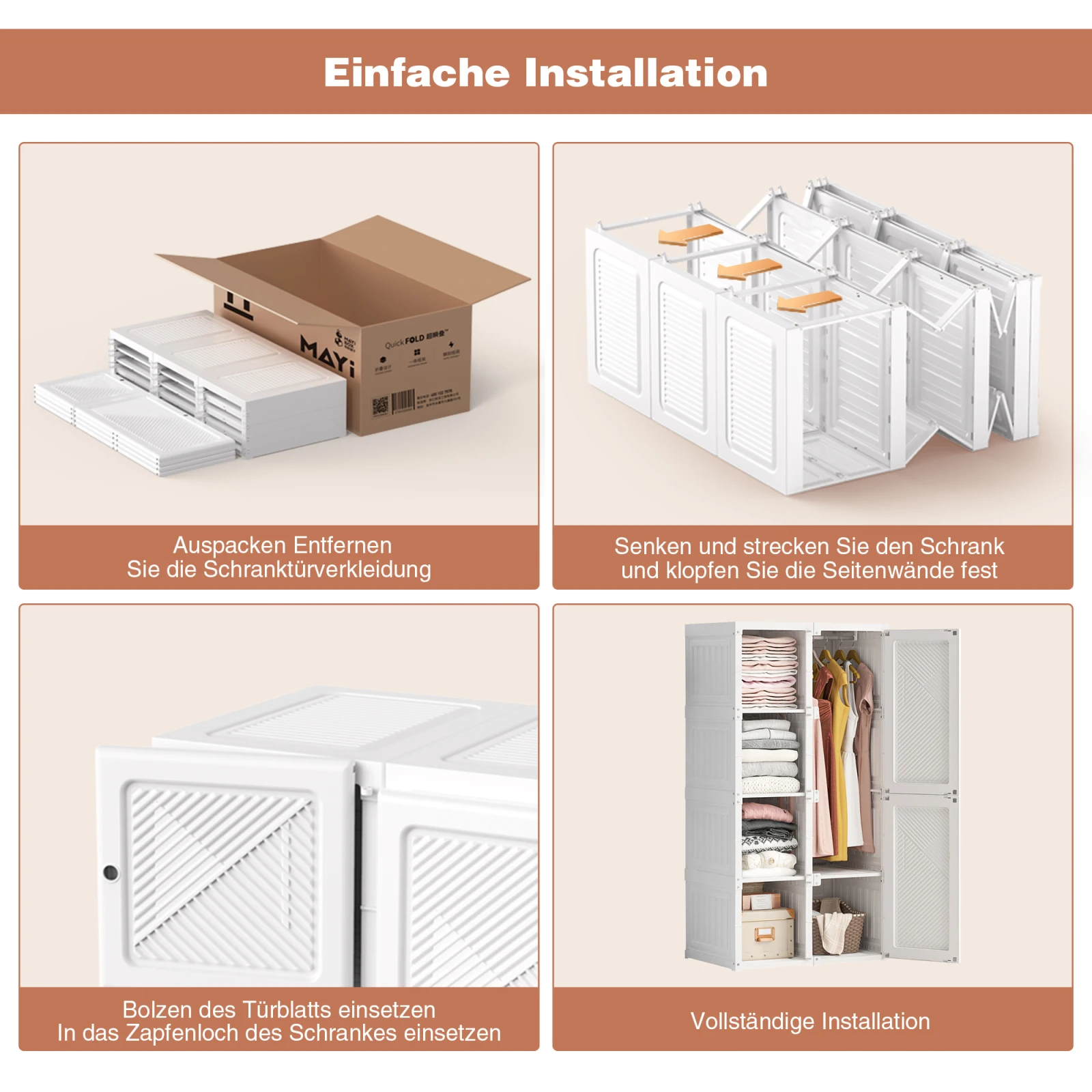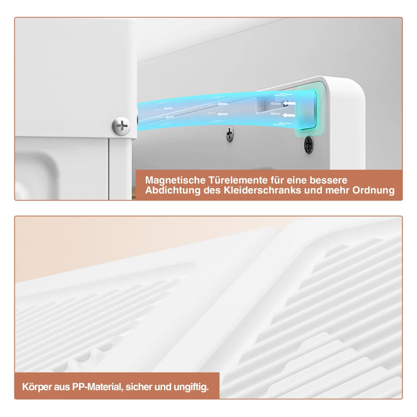 Disposizione flessibile della porta magnetica: con magneti su ogni porta, questo armadio portatile si chiude saldamente e protegge bene i tuoi vestiti. E con 2 porte bloccate insieme tramite staffe di collegamento, è possibile aprire una serie di porte contemporaneamente per un facile utilizzo.