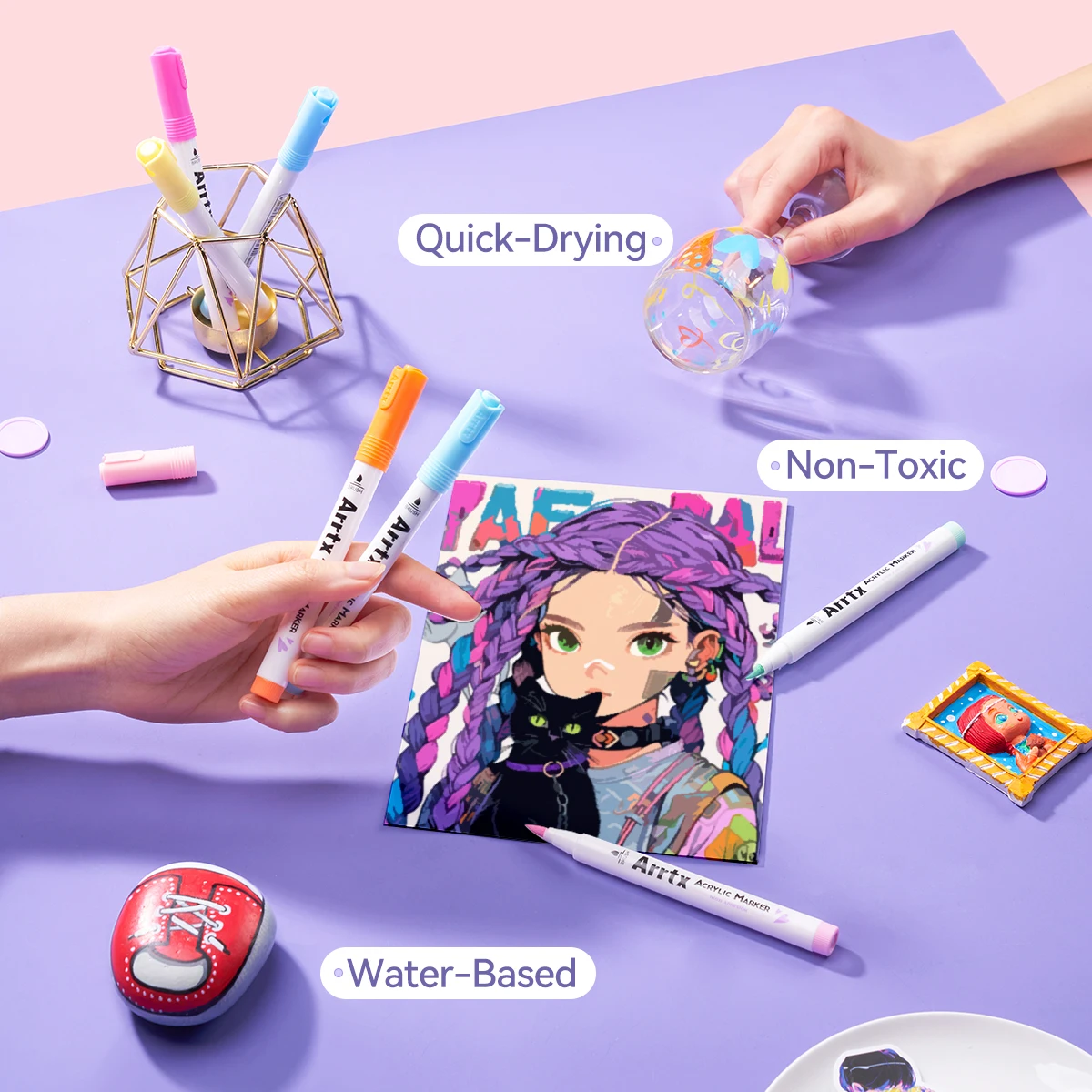 ❤【Scelta di colori abbondante】 I nuovi colori da 60 ti offrono tutto ciò di cui hai bisogno per ombreggiare e colorare qualsiasi cosa, dalle tonalità della pelle, dall’arte del manga, dalle illustrazioni di fumetti, dai cartoni animati e dai disegni di costumi.Questo set offre altre nuove sfumature di colore per la creatività. ❤【Asciugatura rapida e impermeabile】 La vernice altamente pigmentata è altamente rivestita, resistente all’acqua e all’abrasione consentendo l’applicazione su qualsiasi superficie.Le penne a vernice acrilica Arrtx sono inchiostro a base d’acqua.Questi pennarelli scorrono senza allagamenti o inceppamenti, è permanente una volta asciutti.Nota: stringere il cappuccio e mettere le penne orizzontalmente se non le si utilizza. ❤【Adatto a più superfici】 Il set di pennarelli acrilici Arrtx fornisce inchiostro liscio a base d’acqua e un’eccellente copertura per una varietà di superfici, funziona per carta, cartoncino, metallo, pittura su roccia, legno, plastica, tela, tessuto, pietra, uova di Pasqua, Pasqua decorazione, metallo, ornamento natalizio, pittura con zucca di Halloween, calligrafia, album di ritagli, scritte a pennello, biglietti di Natale, regali di compleanno, biglietti di auguri o qualsiasi progetto artigianale fai-Esprimiamo l’immaginazione! ❤【Facile da applicare, senza premere verso il basso, senza tremare】 Con un nuovo design, queste penne sono molto facili da applicare e non è necessario scuotere e premere per le punte durante l’utilizzo, è sufficiente aprire il cappuccio per utilizzare la penna. Il corpo rotondo della penna è realizzato è comodo da impugnare. ❤【Non tossico e sicuro】 Il set di pennarelli per disegno Arrtx adotta inchiostro pigmentato di protezione ambientale a base d’acqua, che è atossico, insapore, impermeabile e resistente alle alte temperature.Con inchiostro certificato di alta qualità, queste penne da pittura sono sicure e adatte sia a bambini che ad adulti per tutti i tipi di dipinti fai-da-te. ❤【Una custodia per pennarelli di base Easy Store】 È molto più resistente di qualsiasi set di penne precedenti fornito.Ogni pennarello ha uno slot, è ben confezionato, facile da organizzare e riporre. ❤ Pennarello ideale come regalo: i pennarelli Arrtx sono confezionati in un’esclusiva scatola dal design a due livelli per mantenere la penna pulita e ben organizzata. Non tossico e sicuro, ottimo regalo per bambini, studenti, artisti e adulti a Natale, Halloween, giorno di Pasqua, Ringraziamento, festa della mamma e qualsiasi altra occasione.