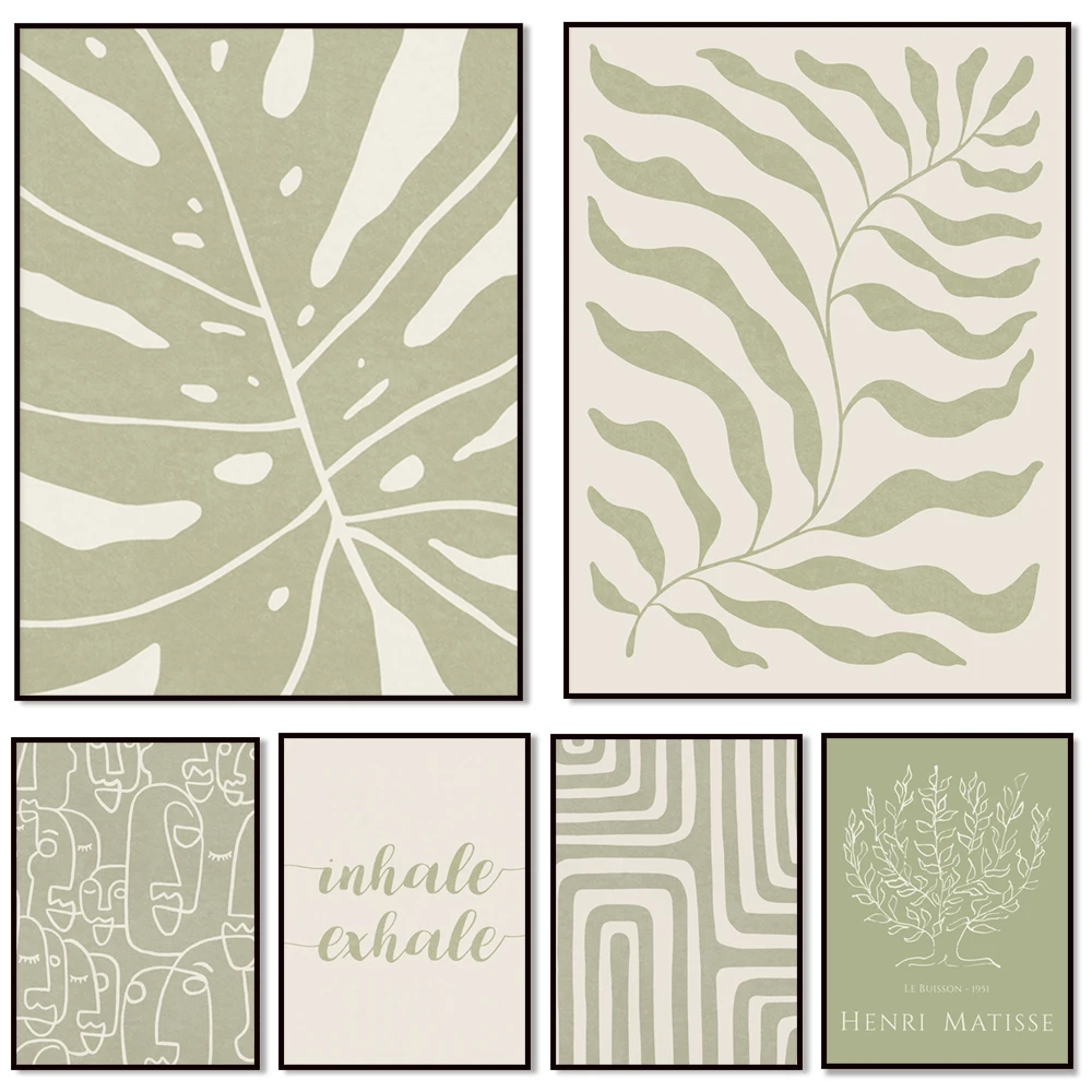 Arte da parete stampabile verde salvia, relax con stampa verde salvia, foglie di piante moderne tela astratta pittura decorativa post