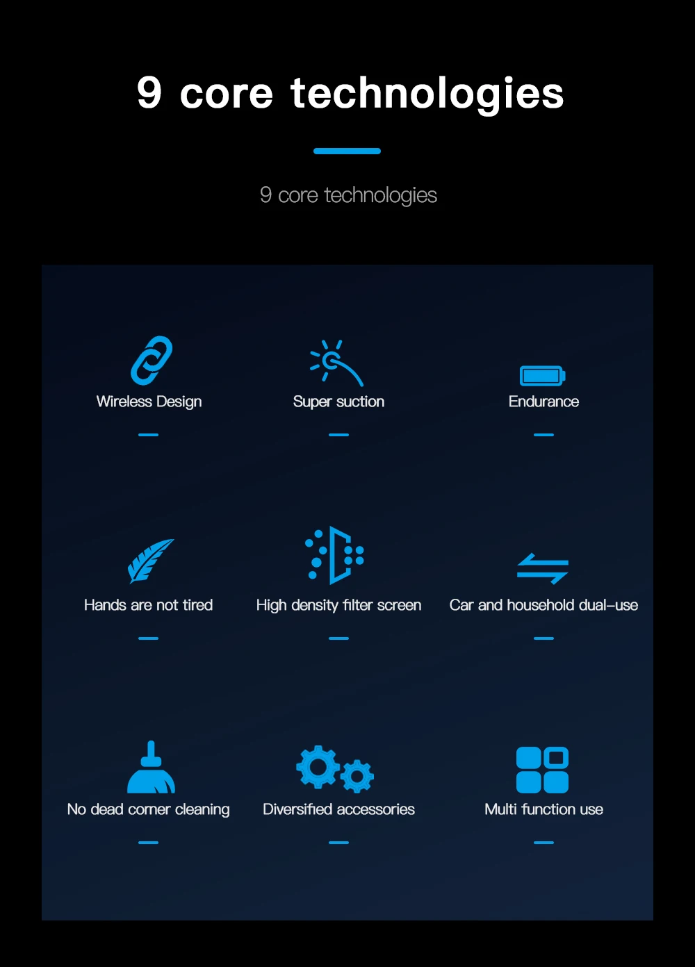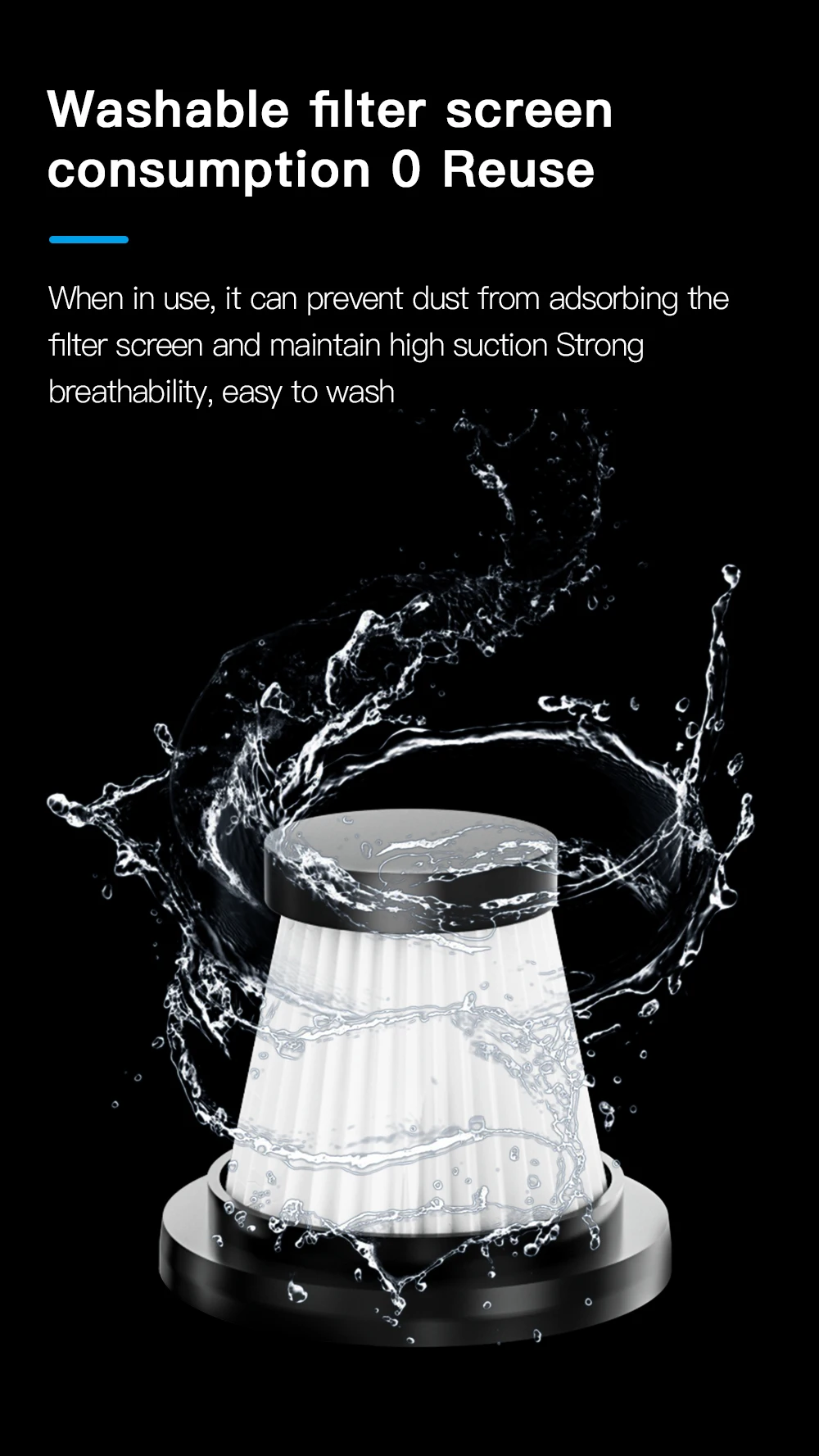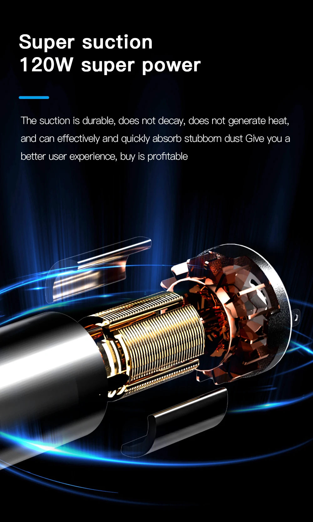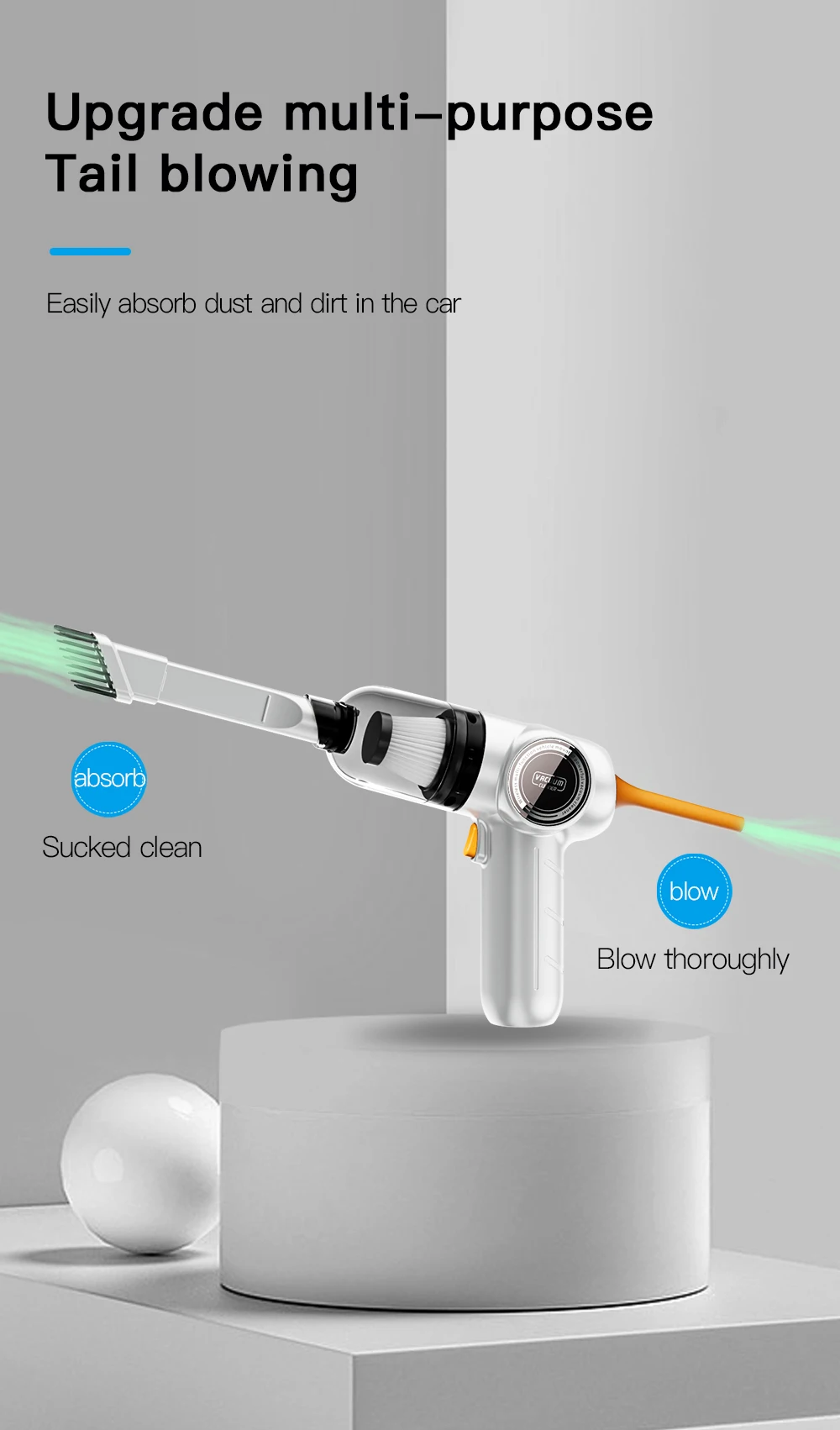 2.Alta potenza da 120 W, aspirazione prolungata senza attenuazione, assenza di riscaldamento, assorbimento efficace e rapido della polvere ostinata.Di piccole dimensioni, facile da riporre, comodo da aspirare e non stanco da tenere a lungo.Aspirare da un’estremità e gonfiare dall’altra, con funzioni potenti, adatte a varie occasioni.