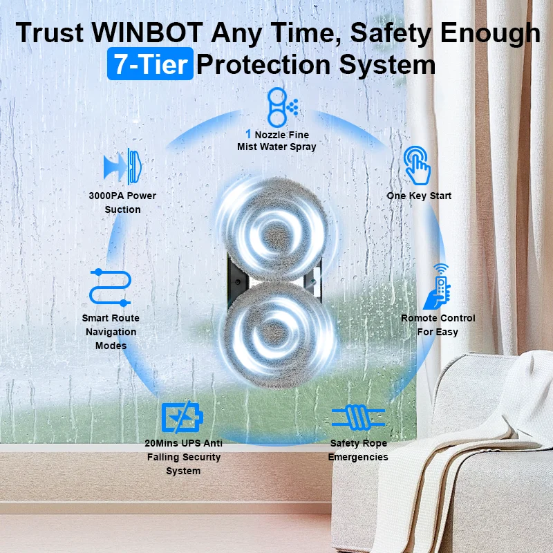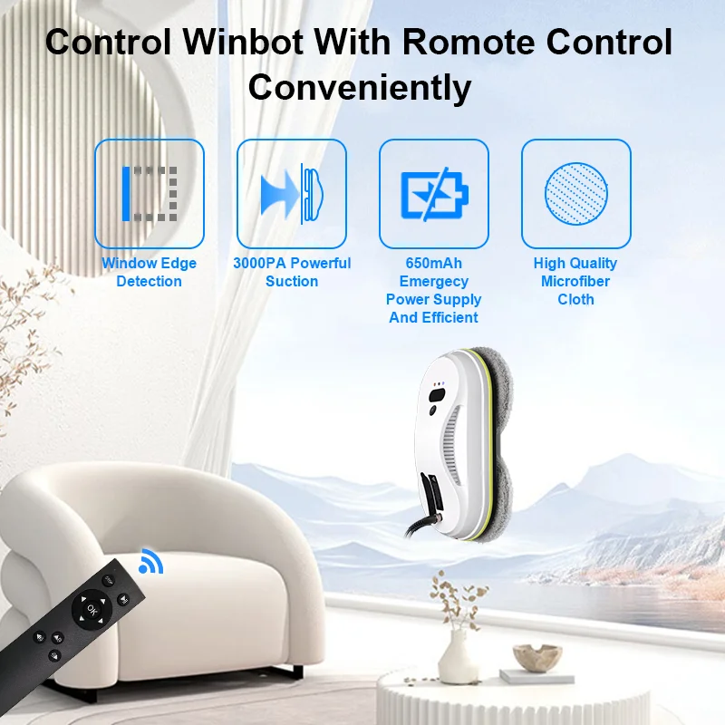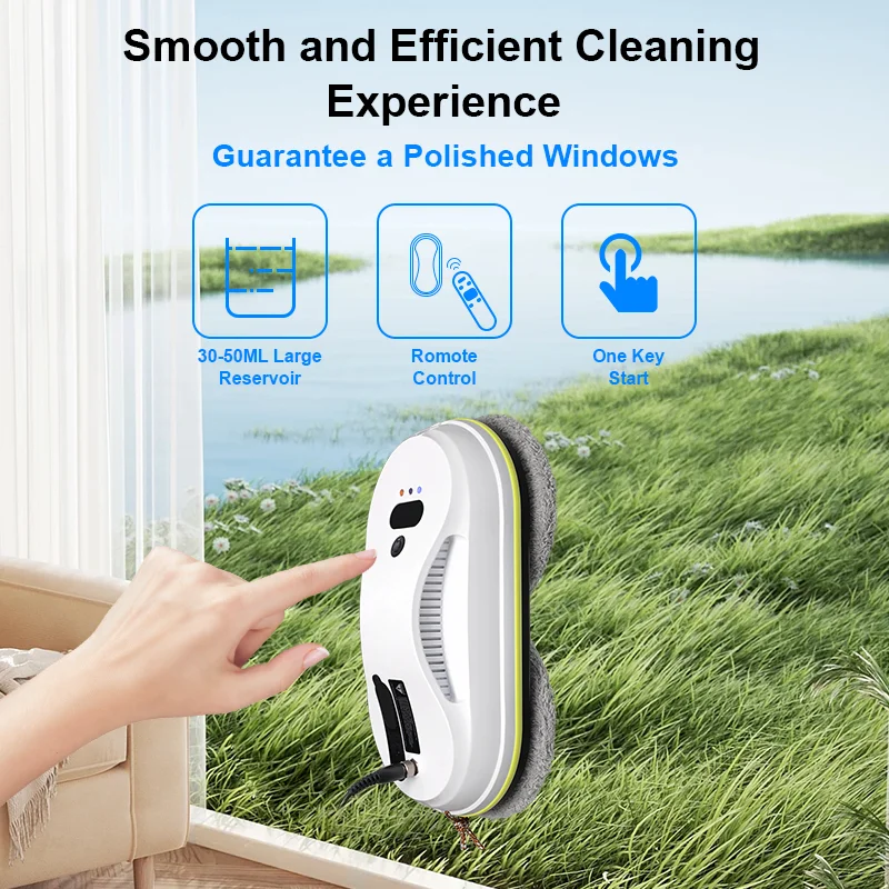 Memoria di posizione: una volta che la finestra diventa luminosa e pulita, il robot tornerà automaticamente al suo punto di partenza, rendendo conveniente la pulizia di ogni superficie grande e difficile da raggiungere.