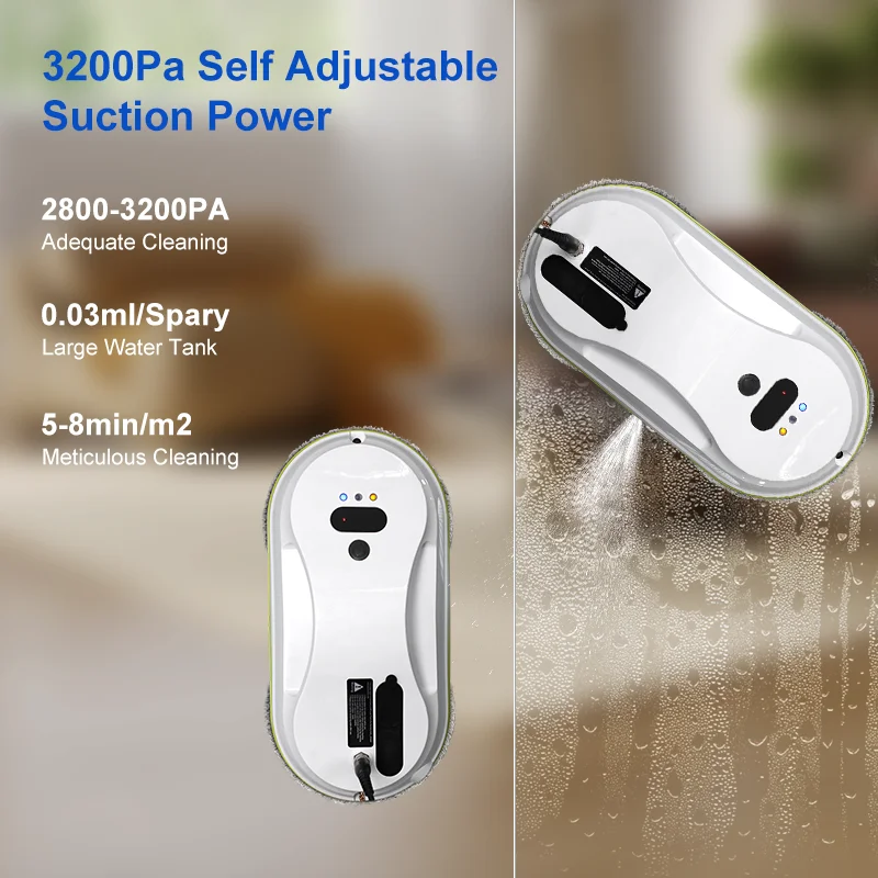 Pulizia facile – Il robot ha un’eccellente connettività e una potente forza di aspirazione di 5800 Pa, liberando le mani e il tempo dal fastidio di pulire le finestre e riducendo il rischio di stare in piedi e lavorare in quota.