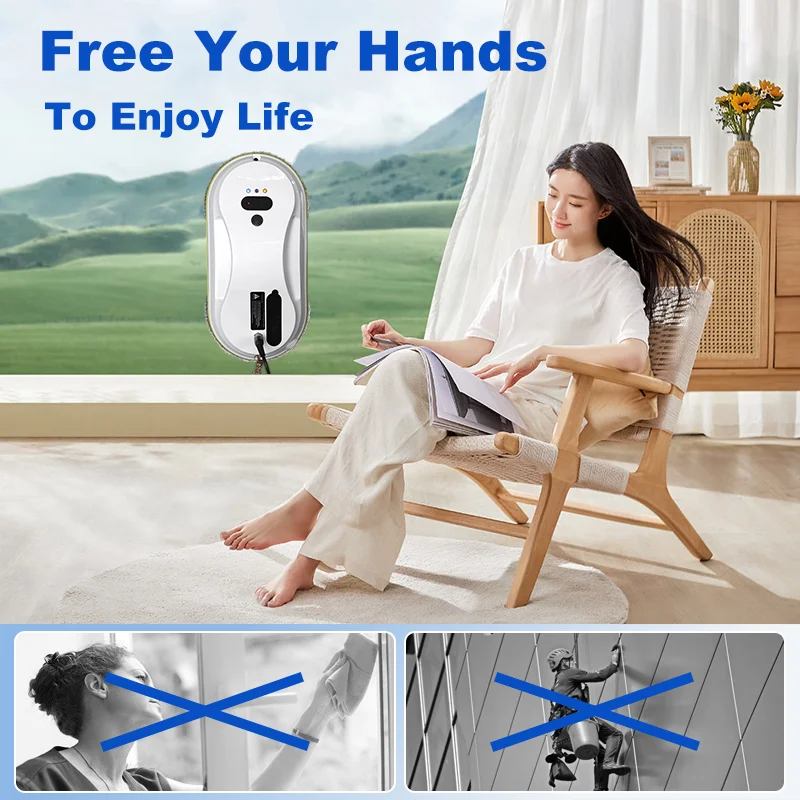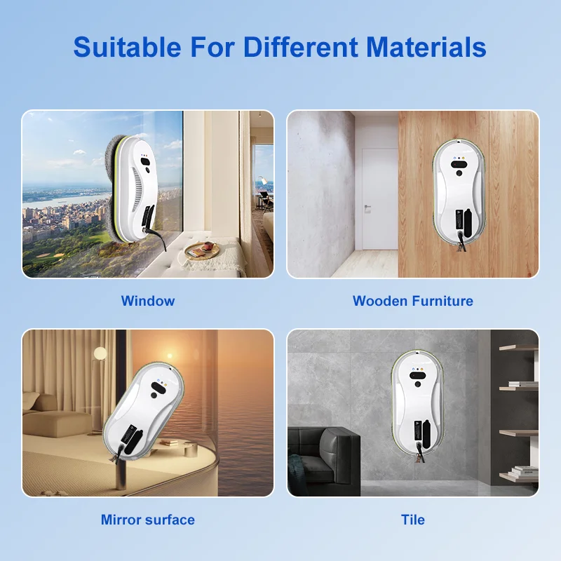 Memoria di posizione: una volta che la finestra diventa luminosa e pulita, il robot tornerà automaticamente al suo punto di partenza, rendendo conveniente la pulizia di ogni superficie grande e difficile da raggiungere.