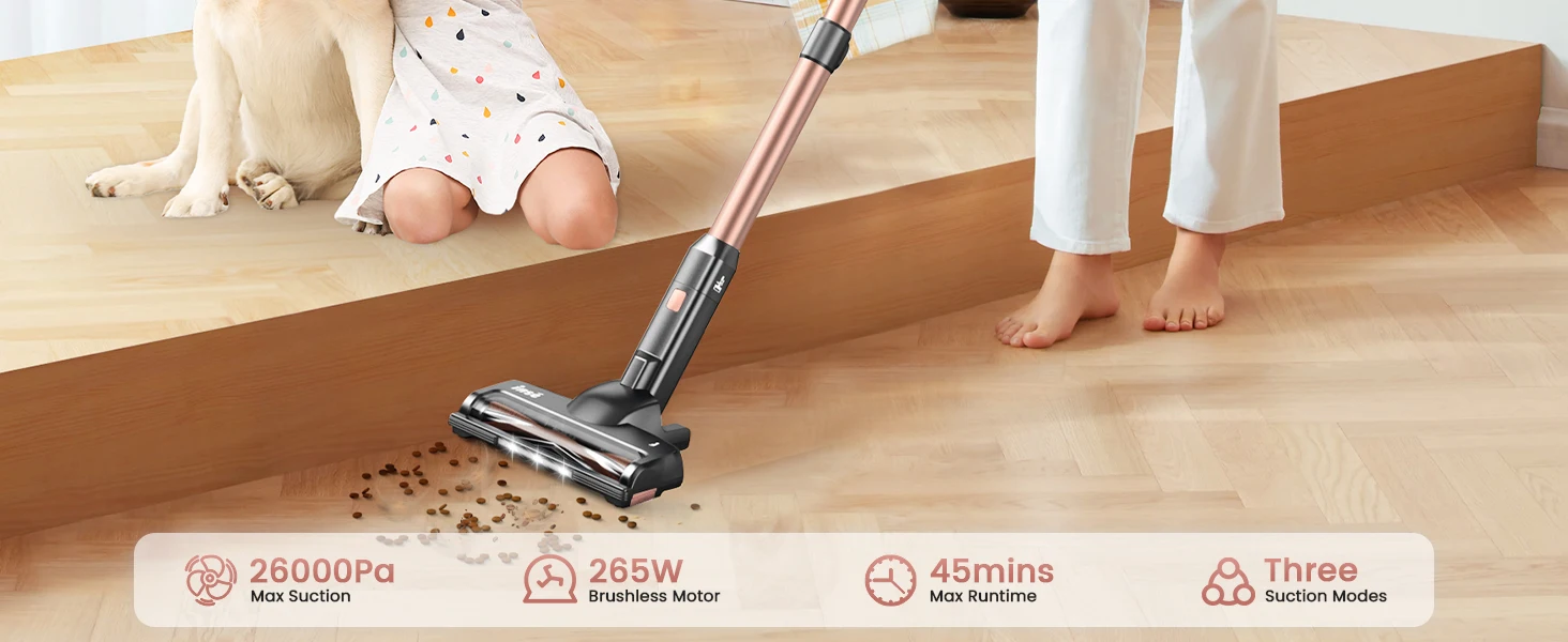 L’aspirapolvere senza fili S7P è una potente e versatile soluzione per la pulizia della casa con un motore brushless da 265 W che genera fino a 26 Kpa di aspirazione, rende altamente efficace per raccogli terra, detriti e peli di animali domestici su varie superfici come tappeti, tappeti e pavimenti duri.