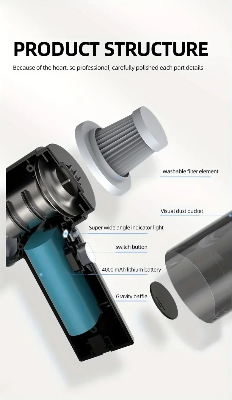 – Portable Mini Dust Collector :The compact size of this vacuum cleaner makes it easy to carry around and use in tight spaces, such as cars or small rooms.