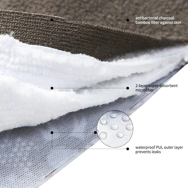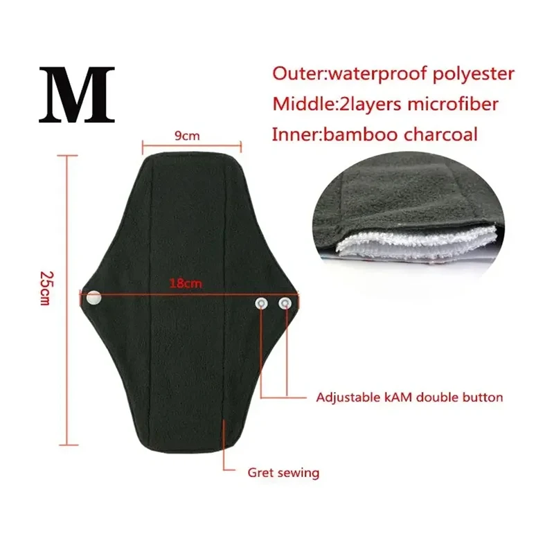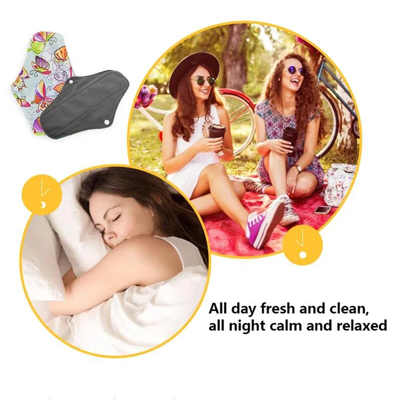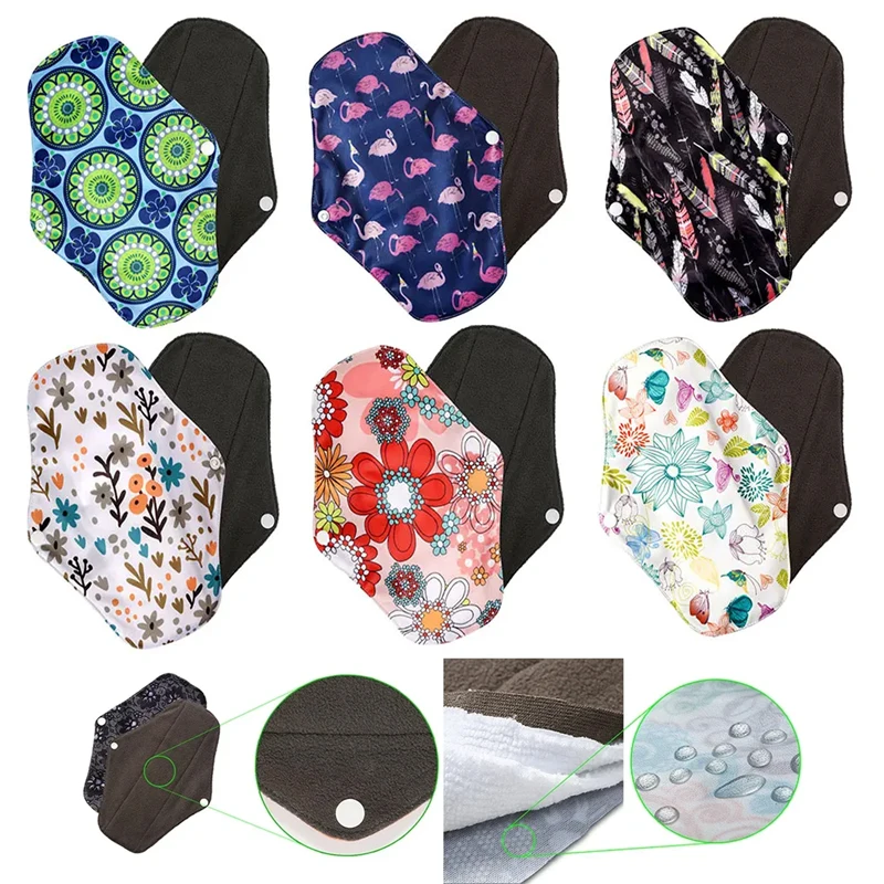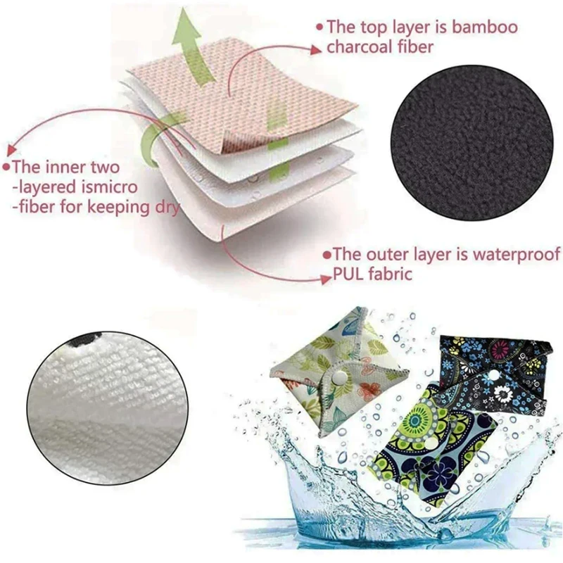 Assorbenti igienici al carbone di bambù organico da 5 pezzi, assorbenti mestruali riutilizzabili lavabili, traspiranti e a prova di perdite