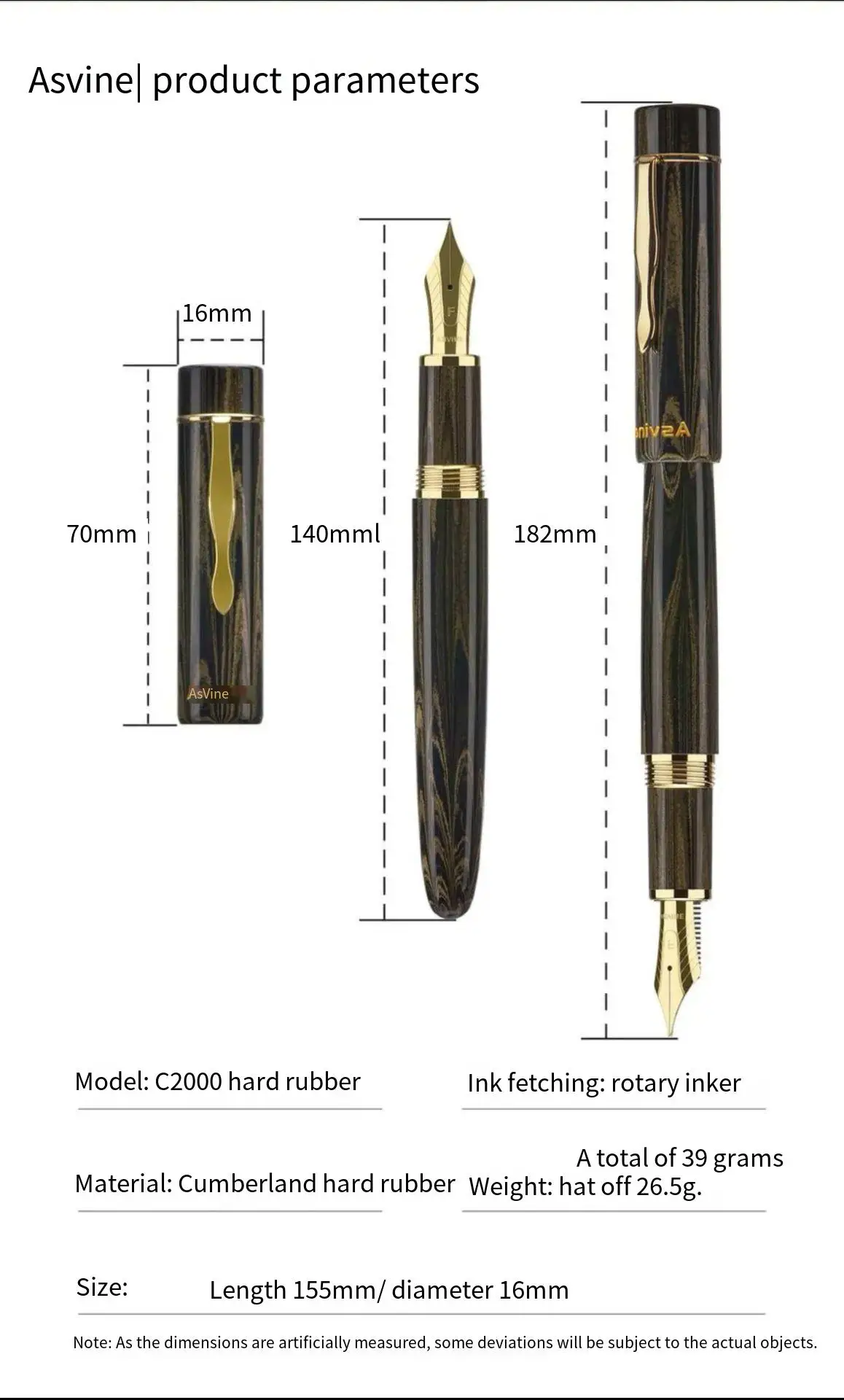 Asvine C2000 Penna stilografica Classica Ebonite Cumberland Penna in gomma dura NO.8 EF/F/M/1.1 Pennino Liscio Studente di scrittura di cancelleria 1Asvine C2000 Penna stilografica Classica Ebonite Cumberland Penna in gomma dura NO.8 EF/F/M/1.1 Pennino Liscio Studente di scrittura di cancelleria