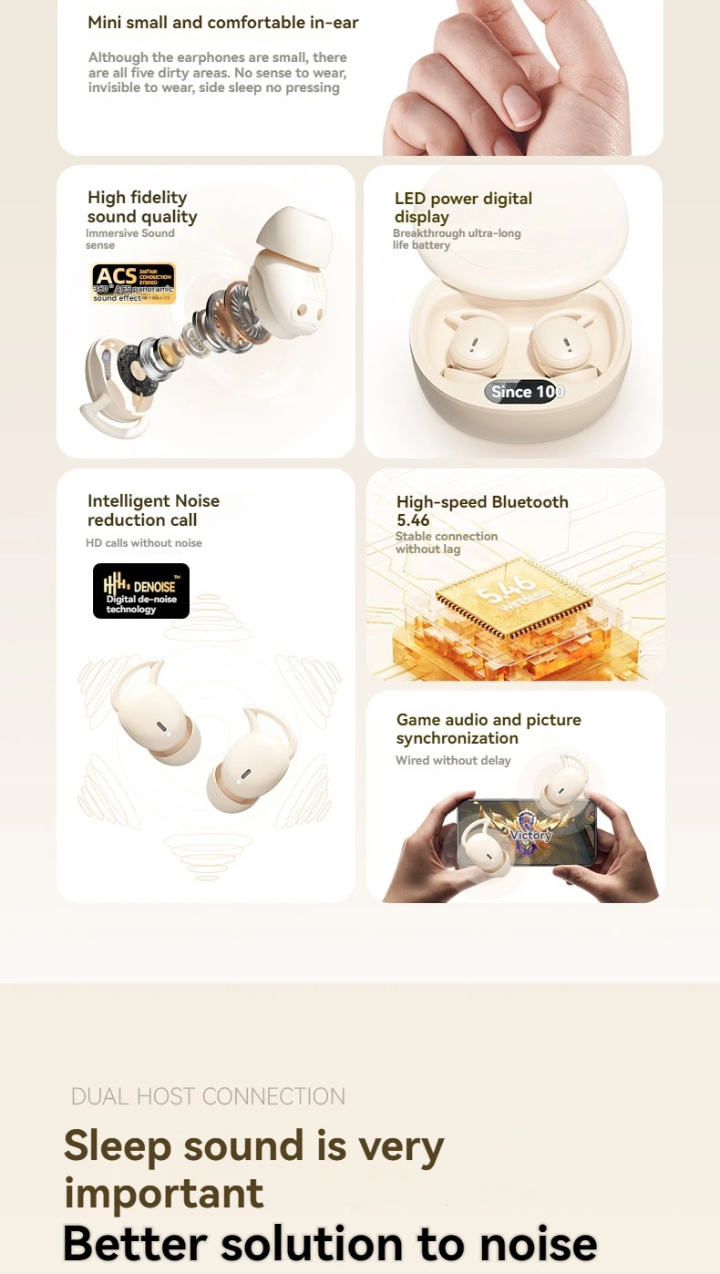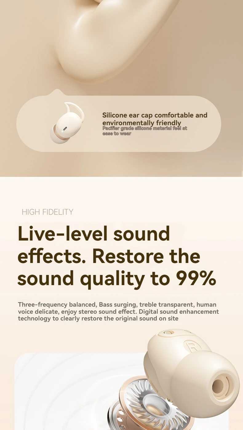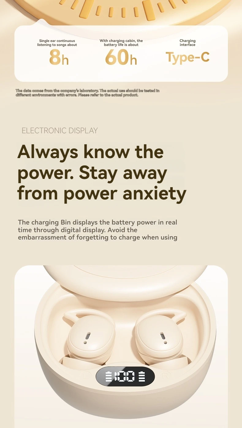 Auricolari Bluetooth M73 TWS ottimizzati per il sonno – Design ultrasottile da 60 ore per chiodini laterali, auricolari con riduzione del rumore per musica/chiamata HD