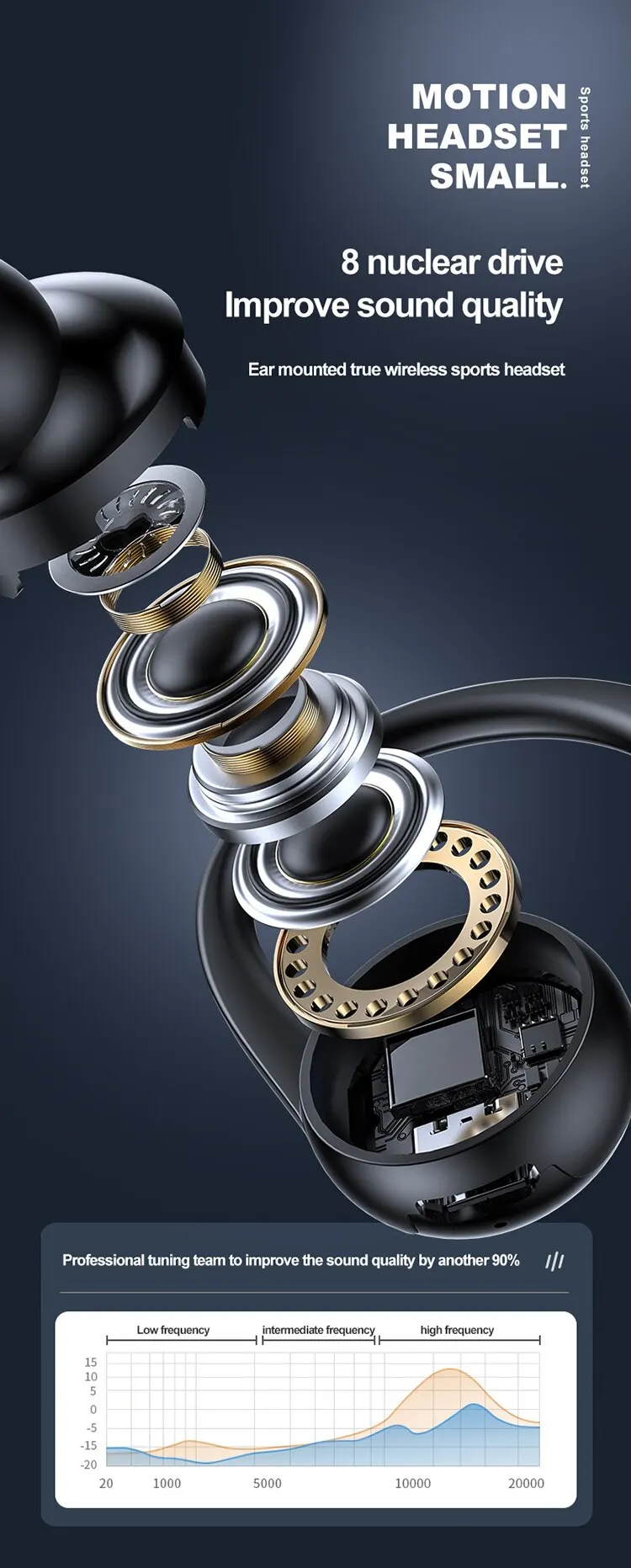 Design appeso all’orecchio: ergonomia, tipo di orecchio anti-caduta, in base alla forma del padiglione auricolare umano, i punti di stress delle orecchie sono dispersi, in modo che le orecchie siano caricate in modo uniforme, E le cuffie non cadono durante l’esercizio intenso.