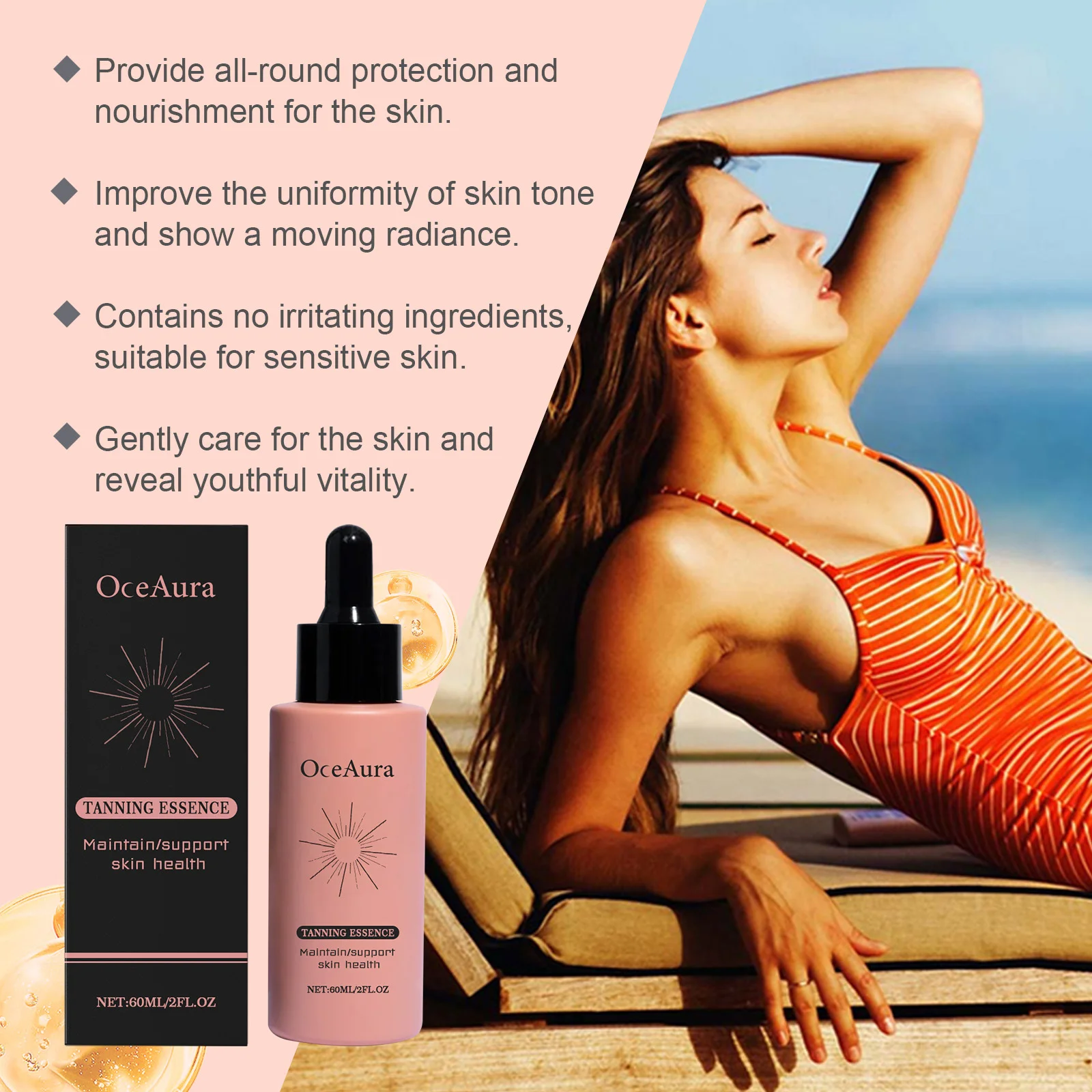 3.This tanning cream provides even tanning, long-lasting moisturization,and gentle soothing effects. Helps maintain youthfulhooking skin, protects against environmental damage, enhances skin elasticity and radiance, and alleviates discomfort after sun exposure.