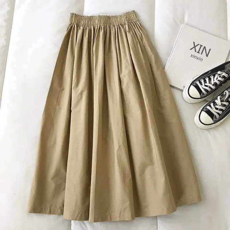 Autumn Winter New Fashion Elastic Waist Solid Women’s Clothing Korean Simplicity Trend Shirring Trend Sweet Western Style Skirts