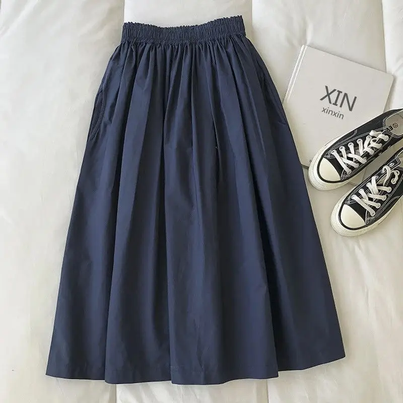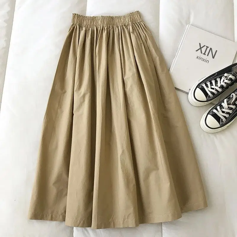 Autumn Winter New Fashion Elastic Waist Solid Women’s Clothing Korean Simplicity Trend Shirring Trend Sweet Western Style Skirts