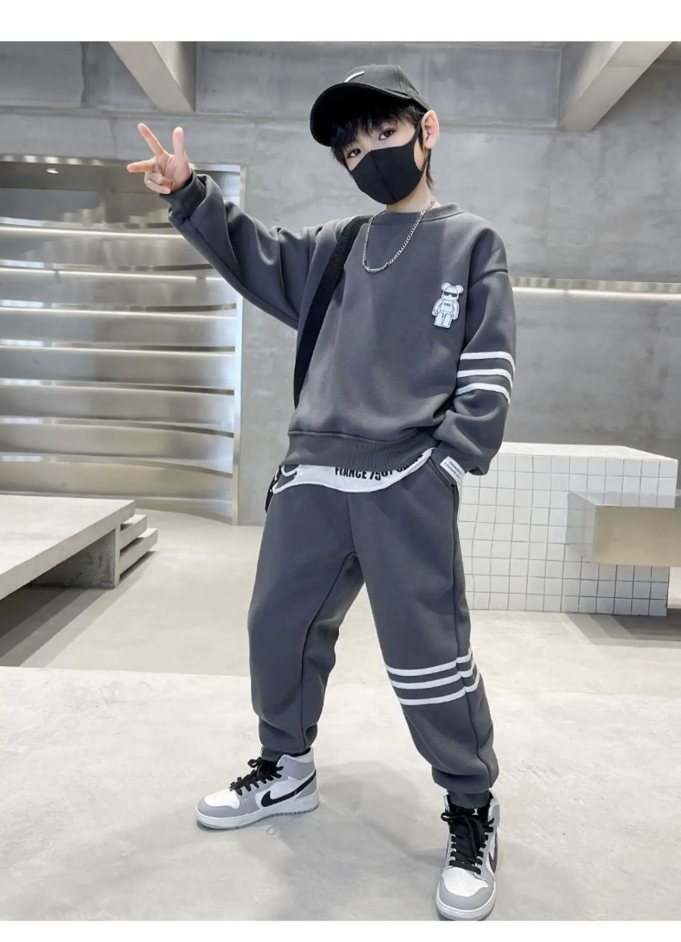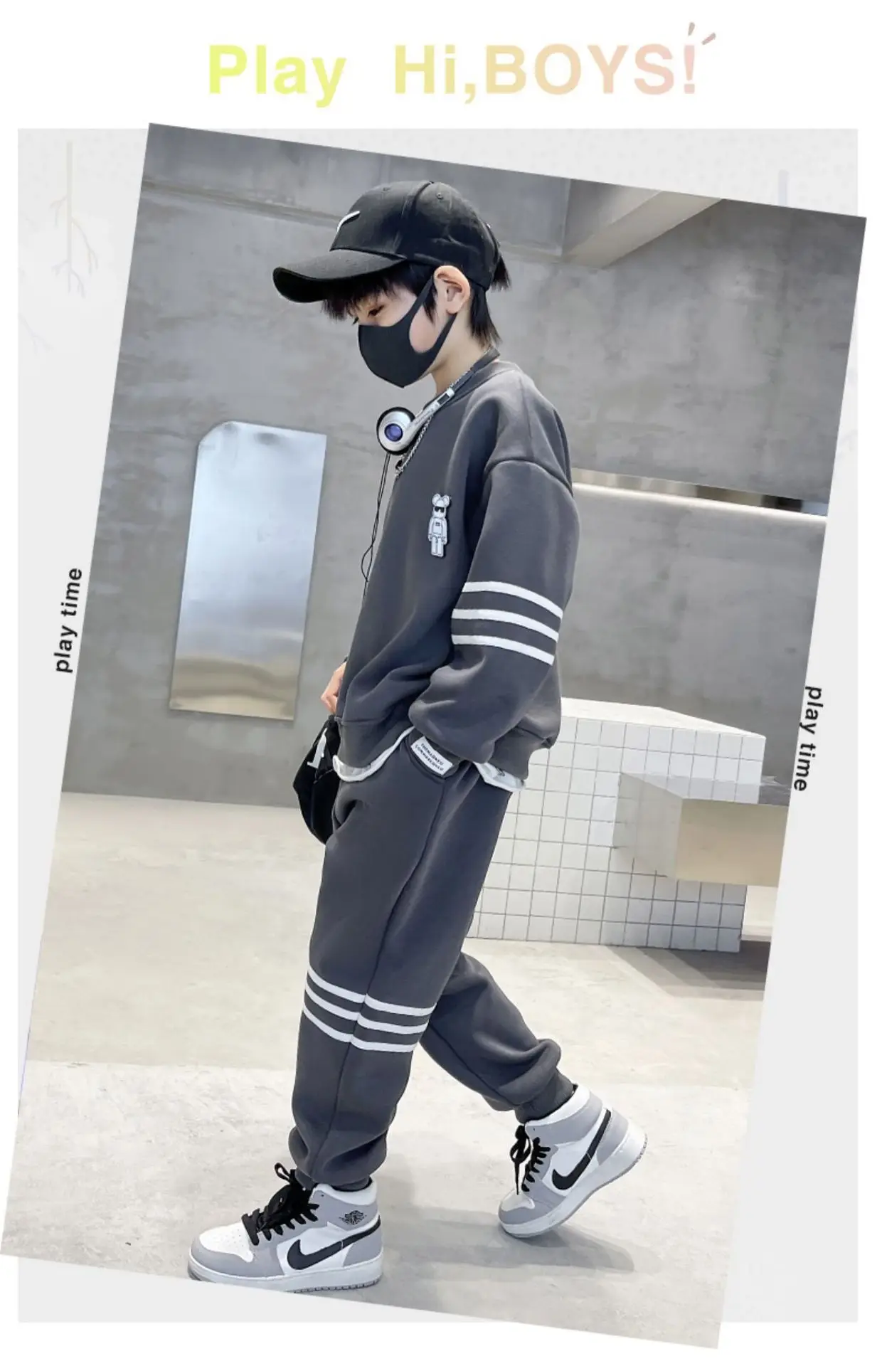 Autunno Bambini Ragazzo Vestiti Set Felpe e pantaloni a righe 2 pezzi Vestito Ragazze adolescenti Pullover Top Bottom Abiti Tute