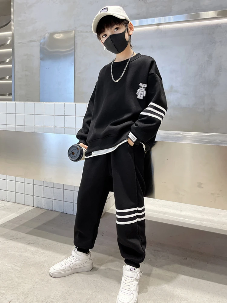 Autunno Bambini Ragazzo Vestiti Set Felpe e pantaloni a righe 2 pezzi Vestito Ragazze adolescenti Pullover Top Bottom Abiti Tute