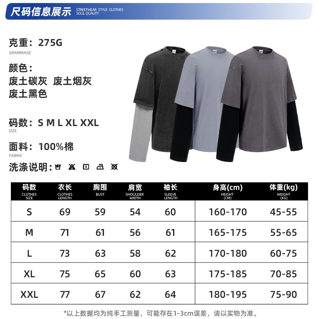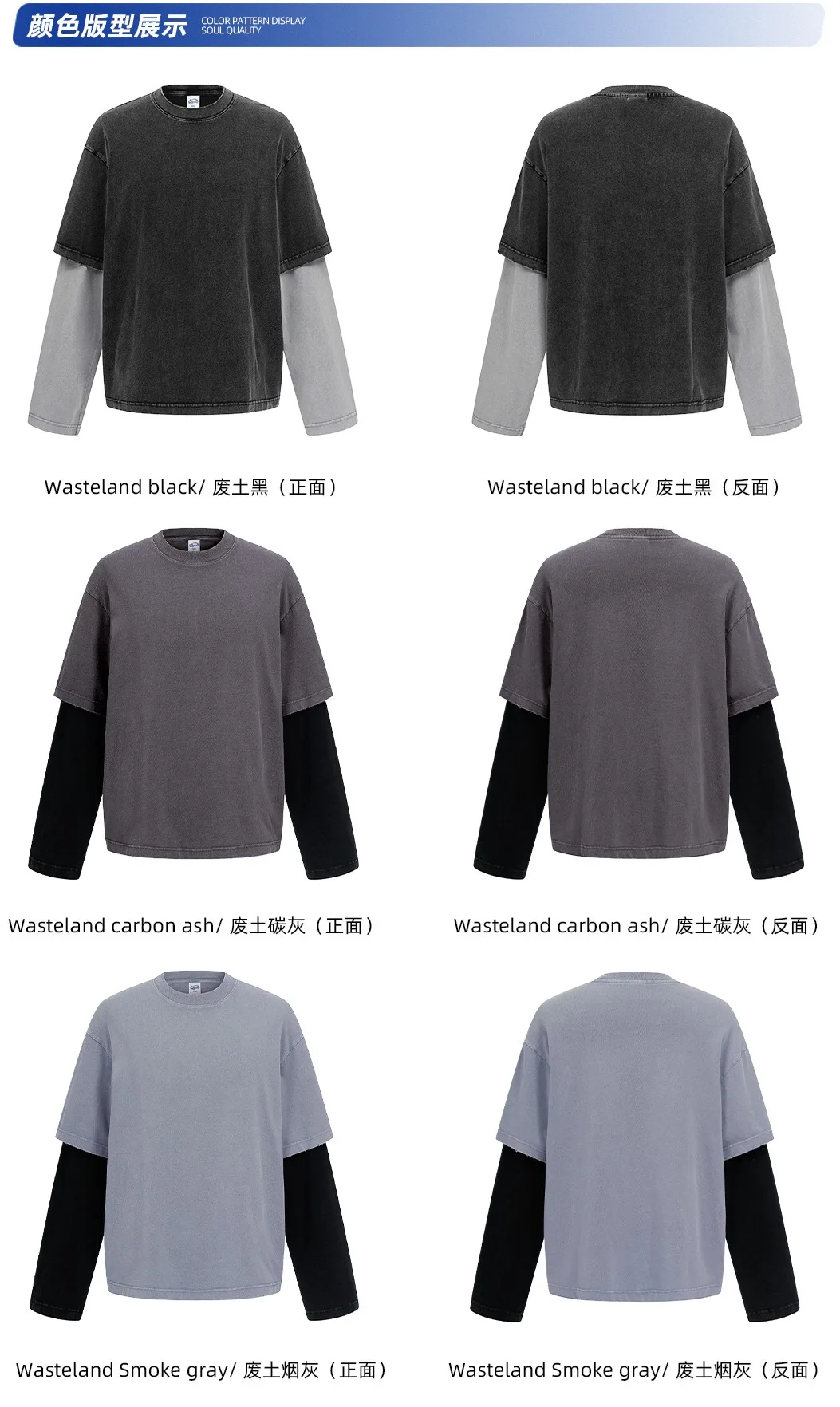 Autunno e inverno 2025 nuova finta t-shirt a maniche lunghe in cotone lavato bicolore