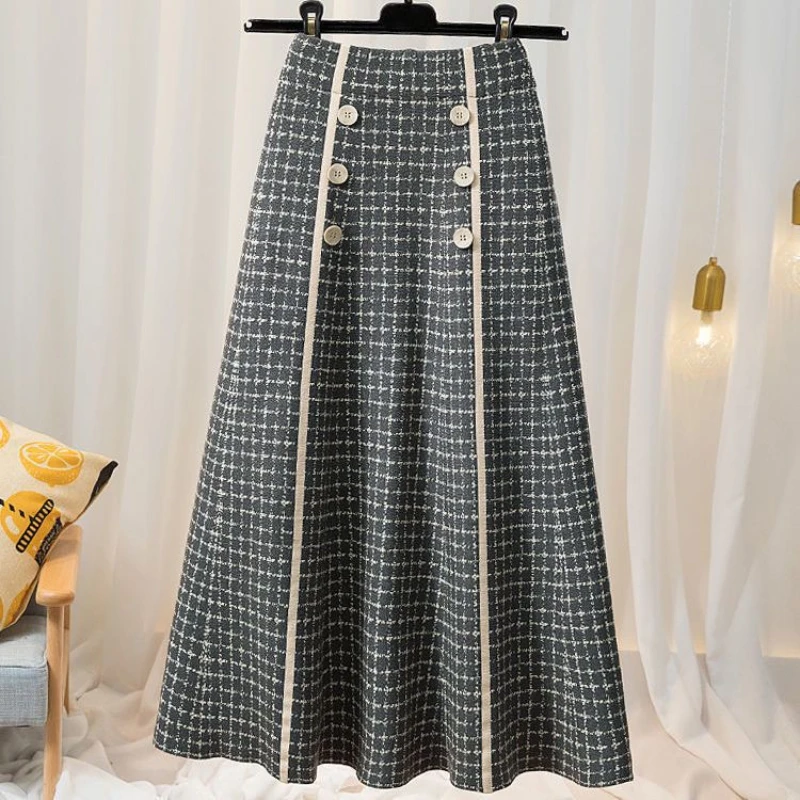 Autunno e inverno donna a scacchi lavorato a maglia a pieghe a vita alta bottone a trapezio Midi moda Vintage elegante gonna da donna da ufficioPensa ad un Regalo Unico e Utile per le Persone a te Vicine!! Regala un buono a partire da € 10,00 a € 300,00