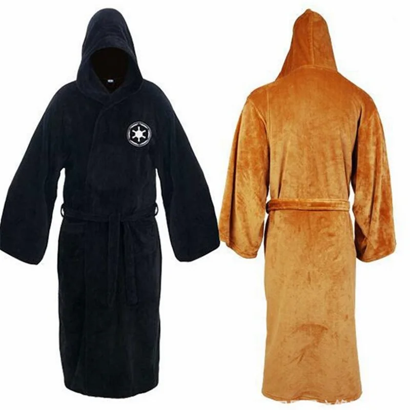Autunno e inverno maschile pigiama di flanella termica addensato tinta unita Anime Empire Warriors camicia da notte lunga accappatoio da casa con cappuccio